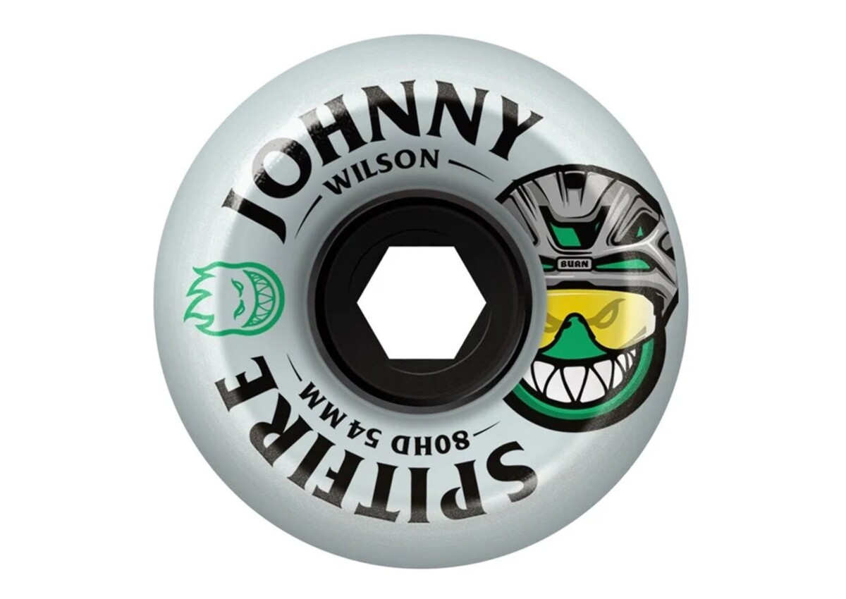 The Spitfire 80HD Johnny Wilson Burn Squan Conical Full Skateboard Wheels transform rough terrain into buttery smooth riding surfaces with their reformulated 80D performance urethane that perfectly balances grip and speed. Their conical shape provides consistent contact with the ground while the mechanically bonded lightweight core ensures precise bearing alignment for smoother rolls and longer glides between pushes.