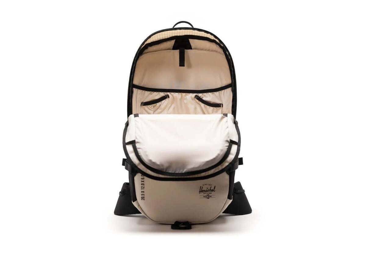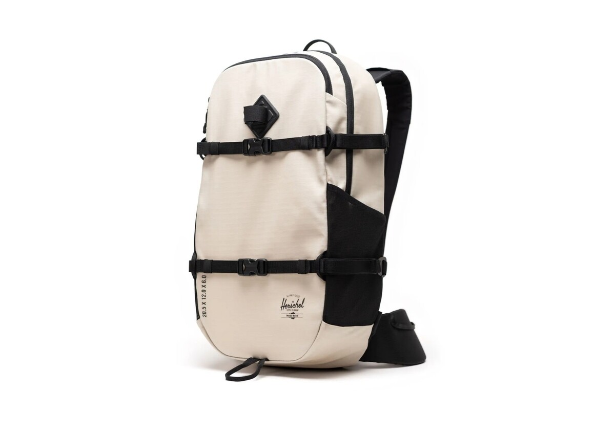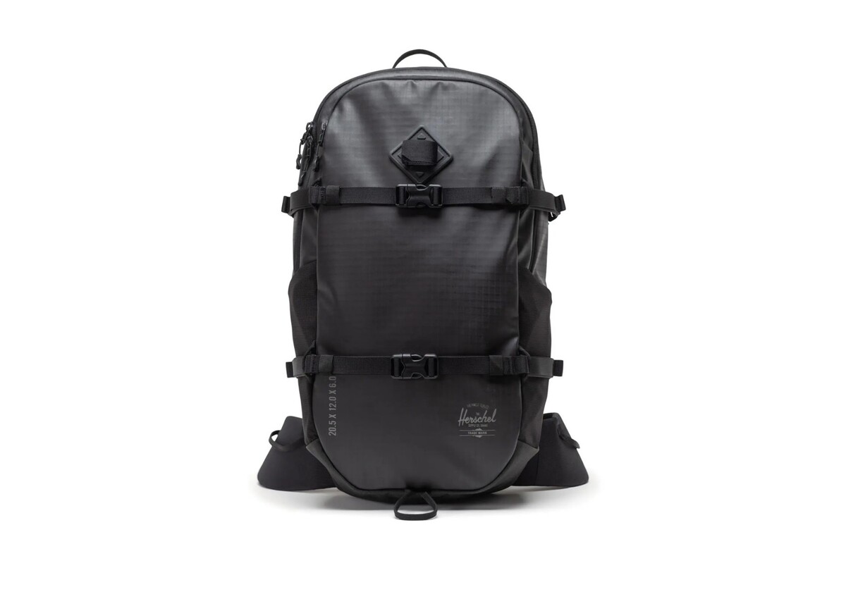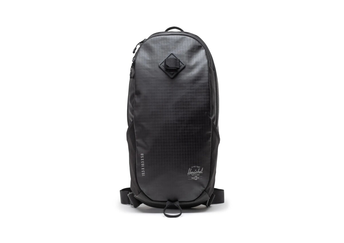 Introducing Herschel Outdoor Equipment our performance line. Engineered with custom All Season fabric and an intuitive design, this backpack offers a built-in hydration system, a removable waist strap and sternum strap with a rescue whistle.