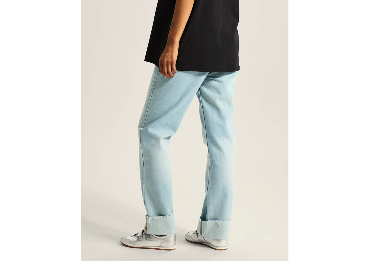 The Annabelle Pants bring a relaxed fit to classic Vans denim. With heavyweight cotton and a straight leg cut, they’re made to hold up and keep you comfortable through whatever the day throws at you. Rolled cuffs with raw hems add a worn-in finish, while a shoelace belt nods to skate culture roots.