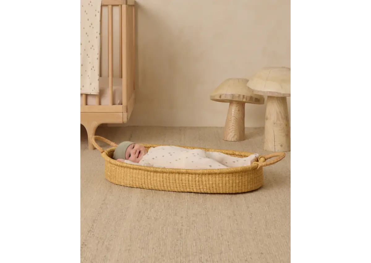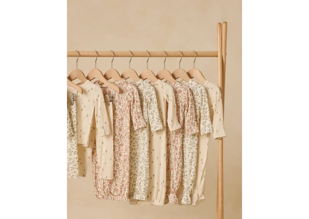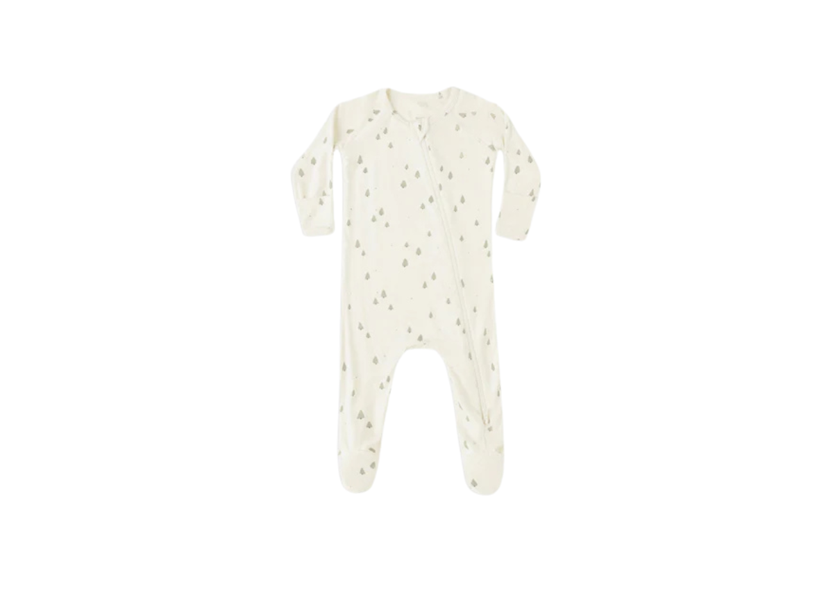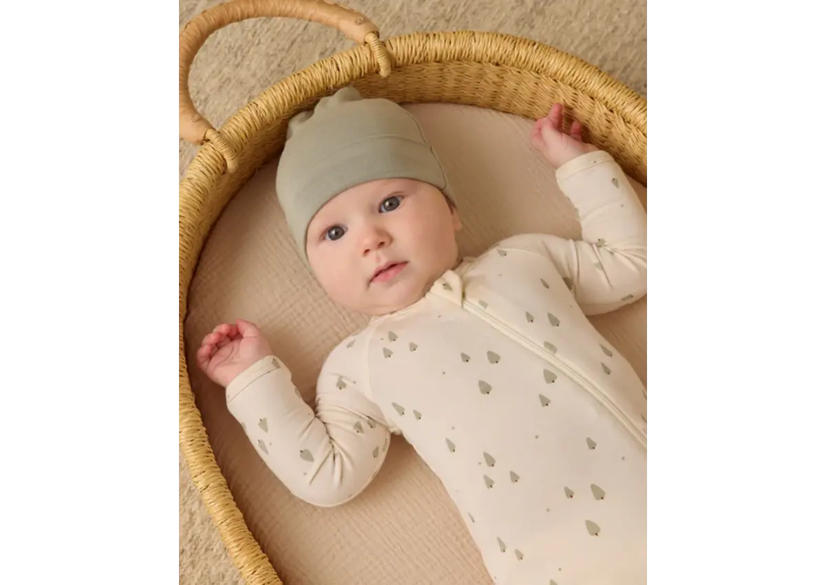 Full double-zip footie crafted from our soft and stretchy bamboo fabric. Fold-over hand mitts included on sizes NB – 3-6M. Raised screen print on soles of size 6-12M for added traction.