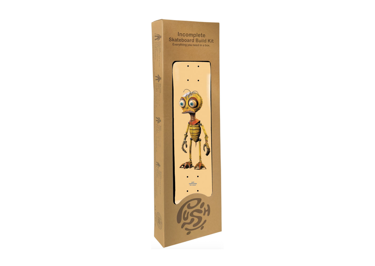 The Push Bee Zombie In-Complete 8.0 x 31.6 comes pre-packaged in a gift box and makes for a perfect gift all year round. This ready-to-build setup comes with all components and a skate tool for easy assembly. A portion of all sales goes to building skateparks in marginalized regions all over the world. Push in-completes come with QR code with size guide info and to see where donations go.