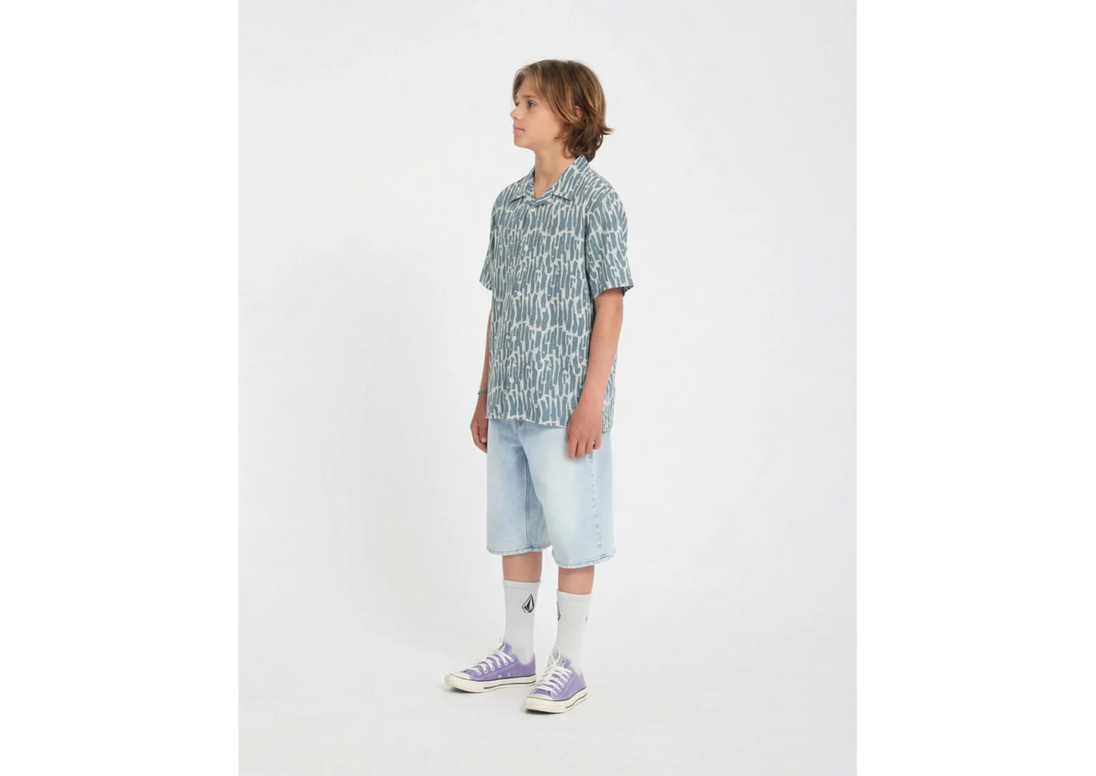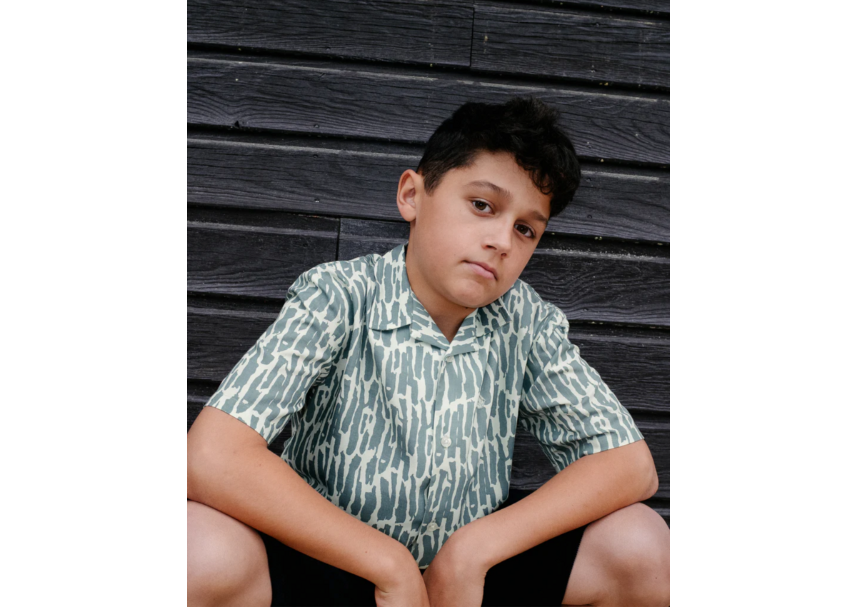 Keep your grom cool in this breathable viscose shirt, covered in an all-over print and finished with Stone embroidery.