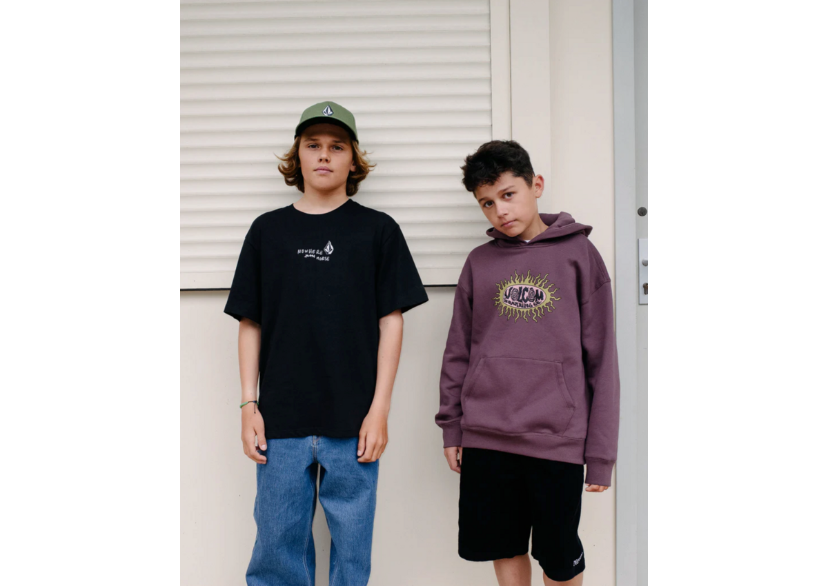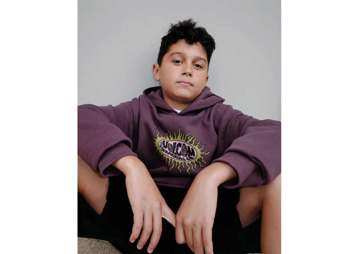 Puff ink graphics pop on this relaxed cotton-blend fleece hoodie built for kids who live loud.