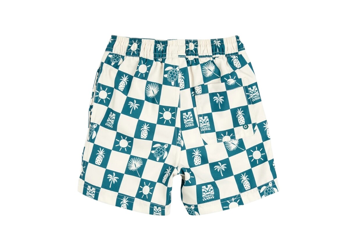 These cool and quirky swim trunks are perfect for your little surfer dude as he splashes through the waves. With a Checkerboard print, the trunks will be a total hit for the summer.