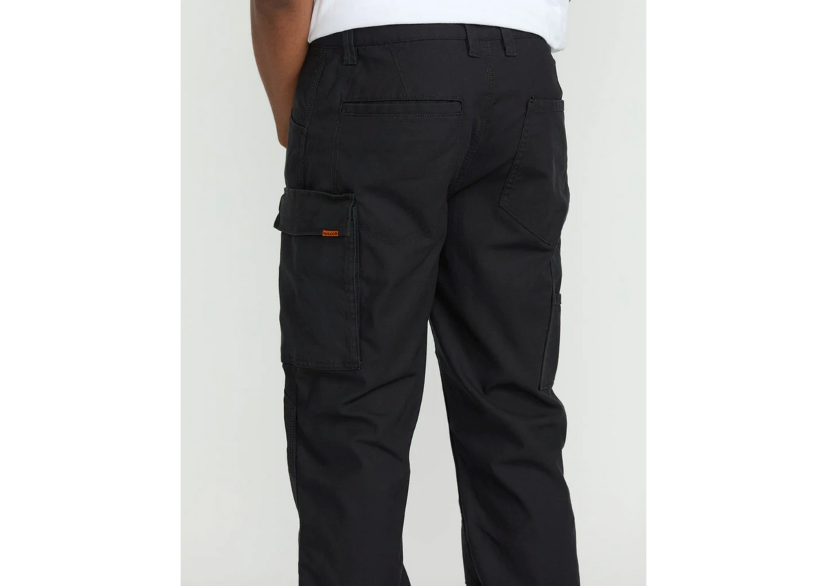 The Volcom Workwear Caliper Relaxed Work Pant is built with tough to tear nylon 66 & engineered to last Superior Stretch, featuring a relaxed rise and loose fit, roomy through the leg and 18” leg opening providing complete comfort, mobility and unstoppable recovery. The triple needle stitching offers a super strong seam finish paired with reinforced knees, reinforcement on bottom hem and a near indestructible metal buckle button. A Durable, Reliable Workwear Pant. The Caliper Relaxed Work Pant seamlessly shifts from the Site to Skatepark; All day, Every Day. Try Quality Made Durable Goods!