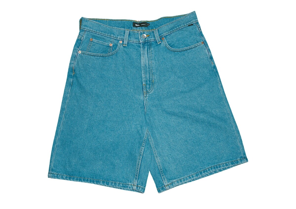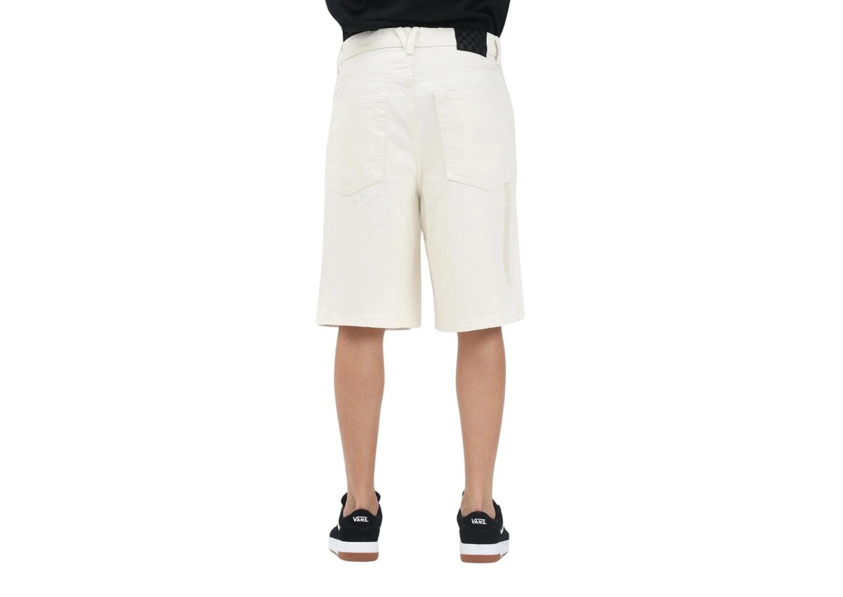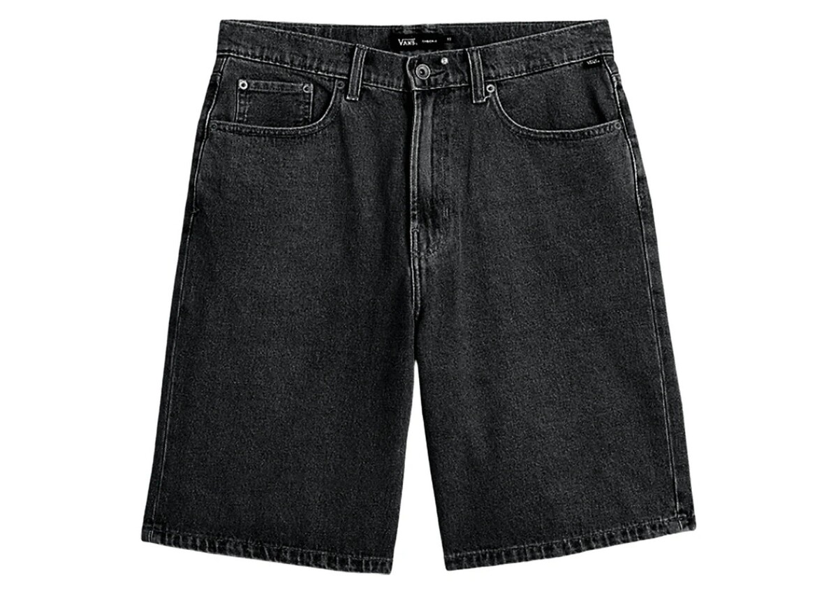 VANS Check-5 Baggy denim shorts for men. They feature a simple design with back pockets and a small detail at the waistband with the Vans logo visible on the back of the strap.