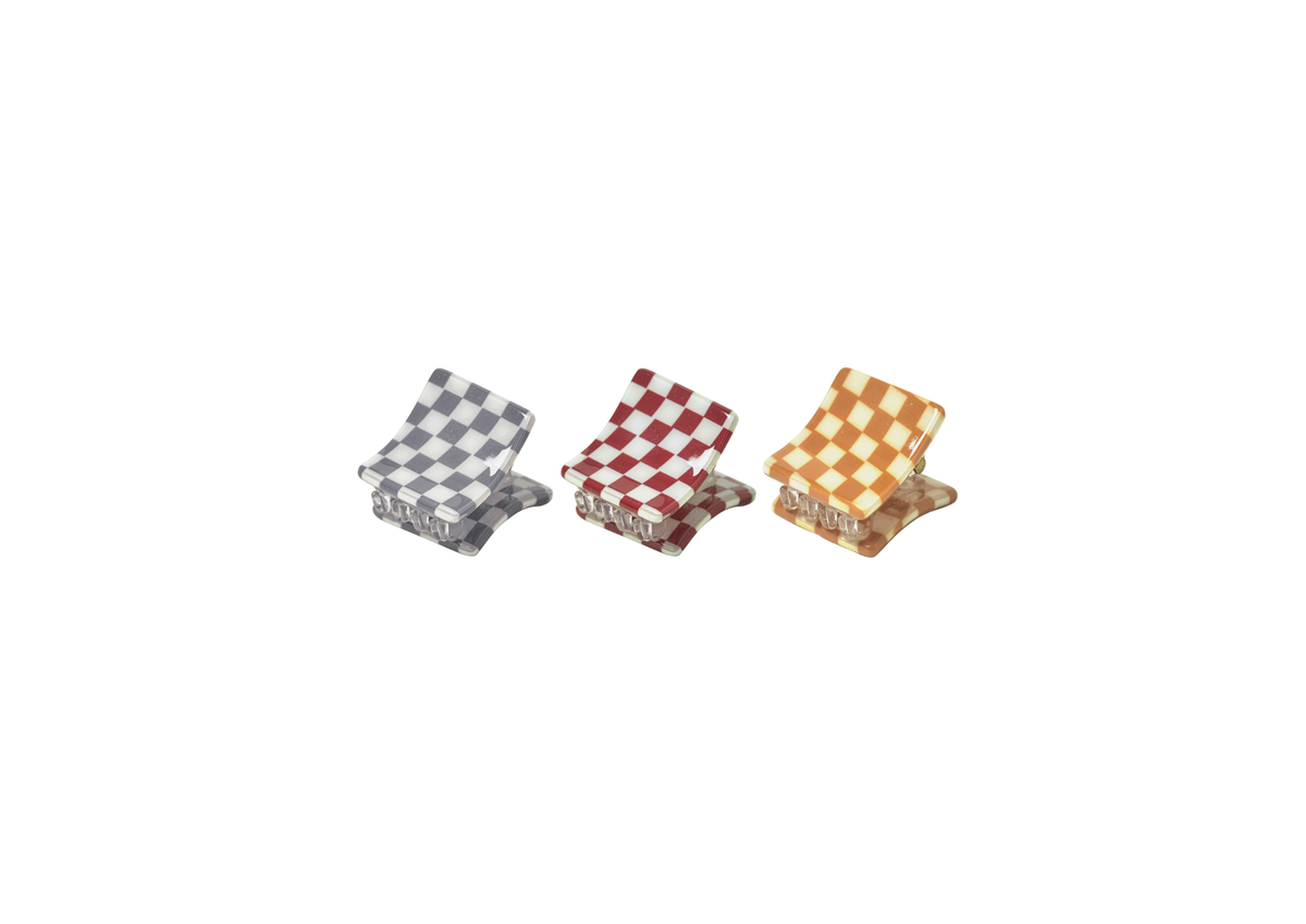 Pack of 3 in french blue checker, rasberry checker, & melon checker.