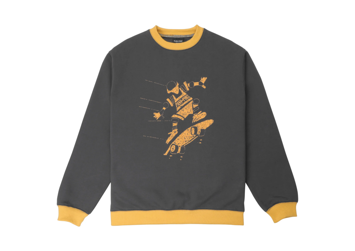Pass~Port Cloncurry sweater from range #46. The Pass~Port jumper is made from a cotton polyester blend and features a screen printed graphic on front and is finished in the classic Pass~Port sweater fit with contrast ribbing.