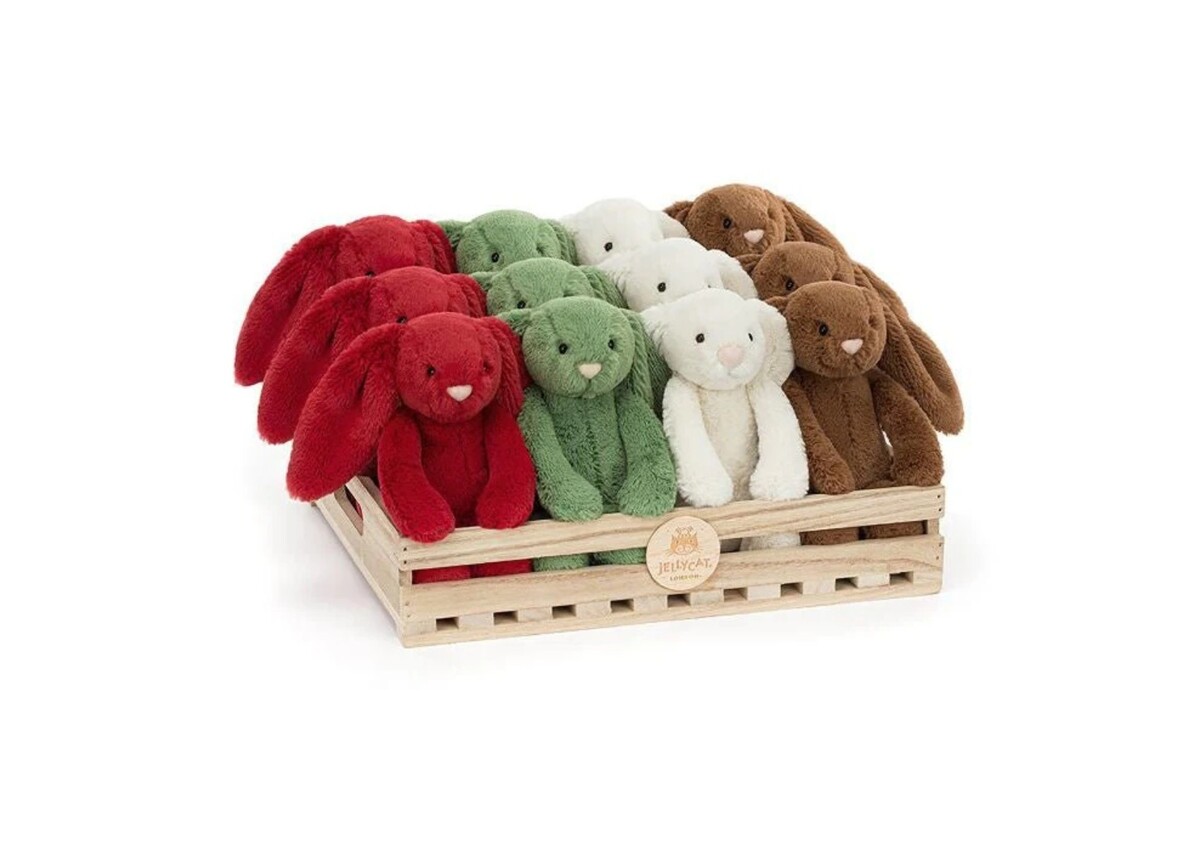 Bashful Christmas Bunny Assortment is a collection little Bashful Bunnies in 4 different Christmassy shades - Cranberry, Ivy and Nutmeg & Cream