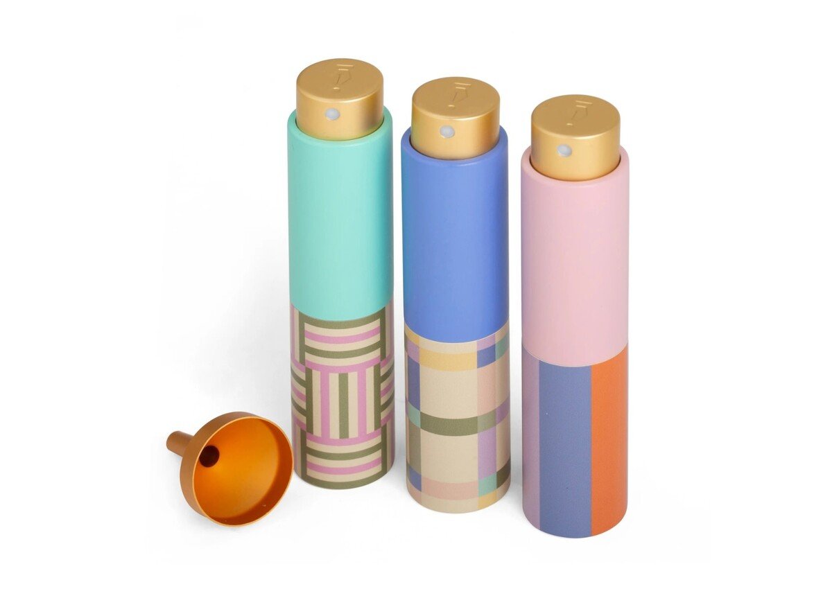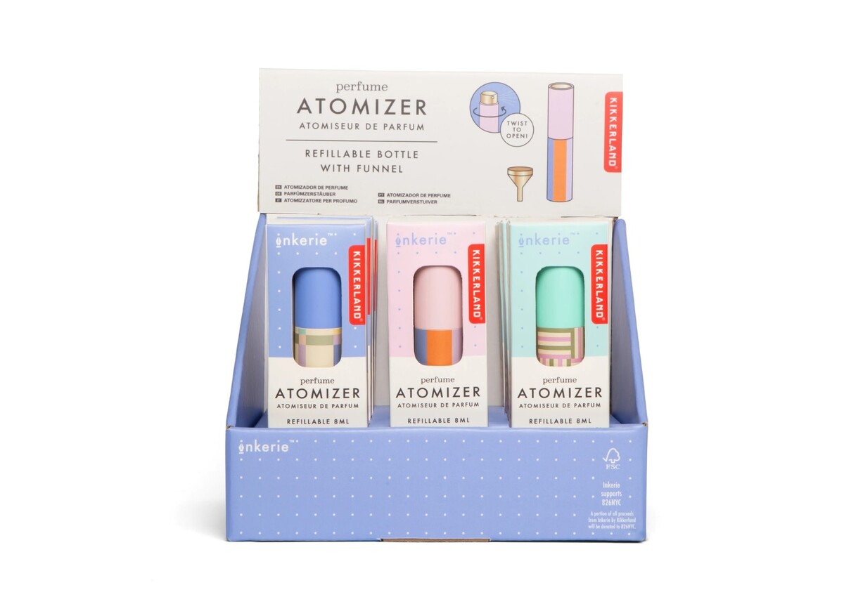 Fill this modern atomizer with your favorite perfume and take it with you! Perfect for travel, the sleek design fits anywhere. Includes funnel.