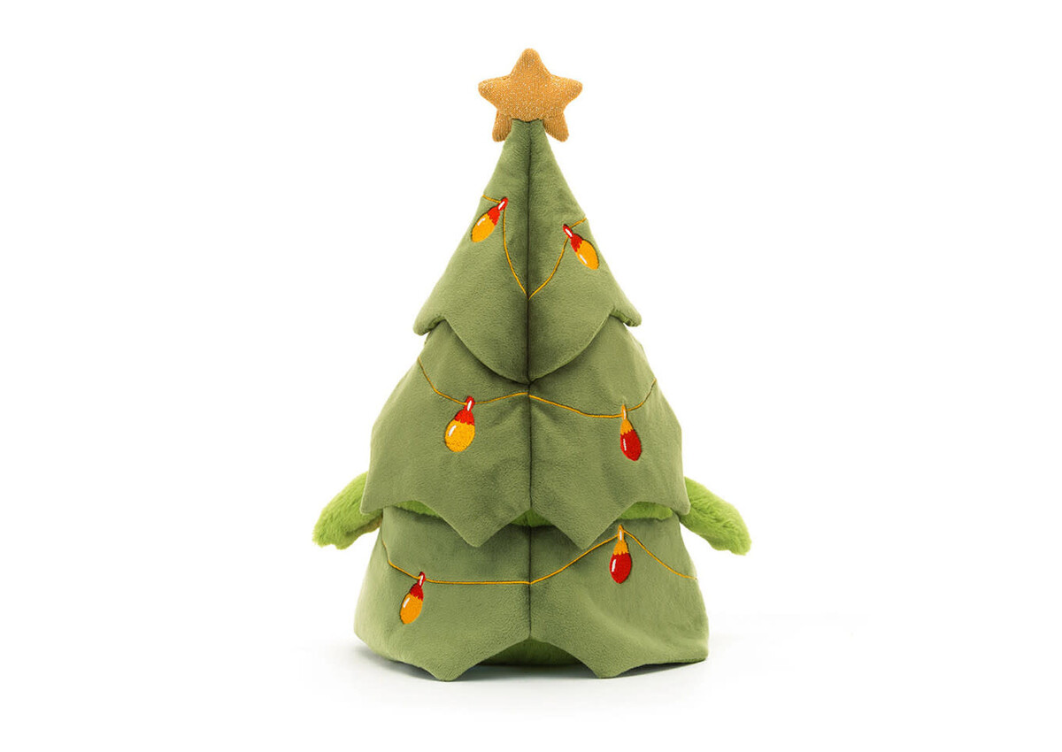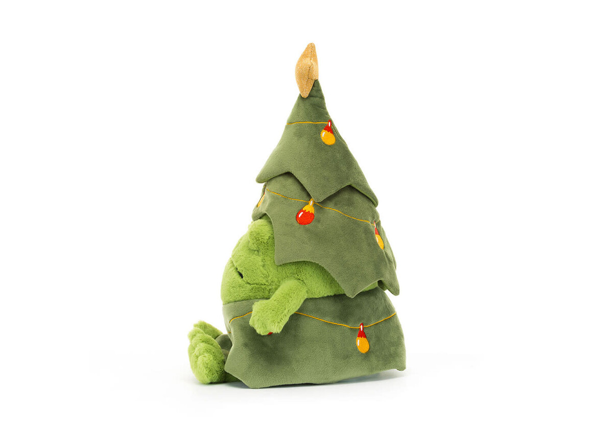 Bring the 'Bah, humbug', big-style, with Christmas Tree Ricky Rain Frog! Our squat, mossy frog wears a Christmas tree costume, with a star-topped hat and matching scalloped dress, all embroidered with baubles. Bring Ricky to the party and everyone smiles!