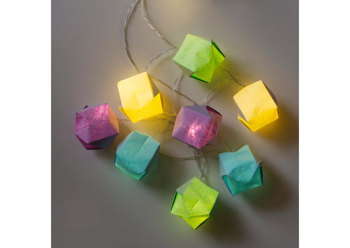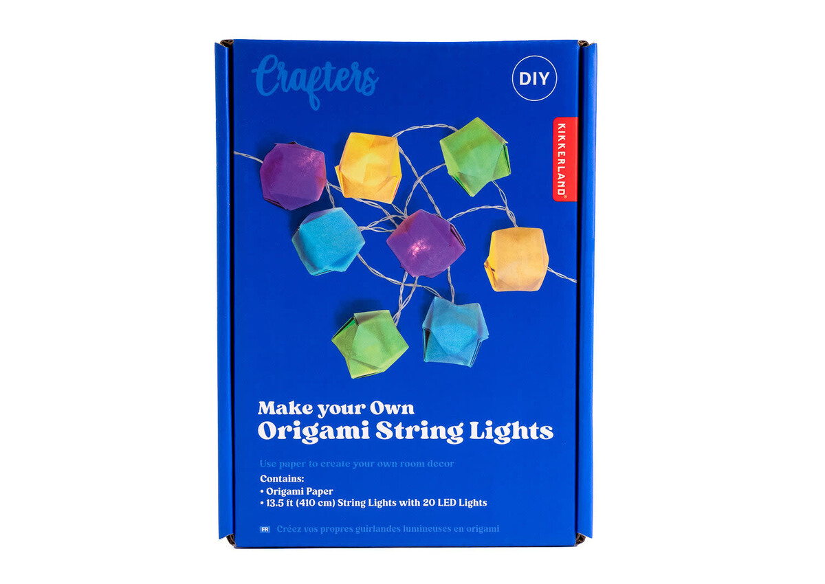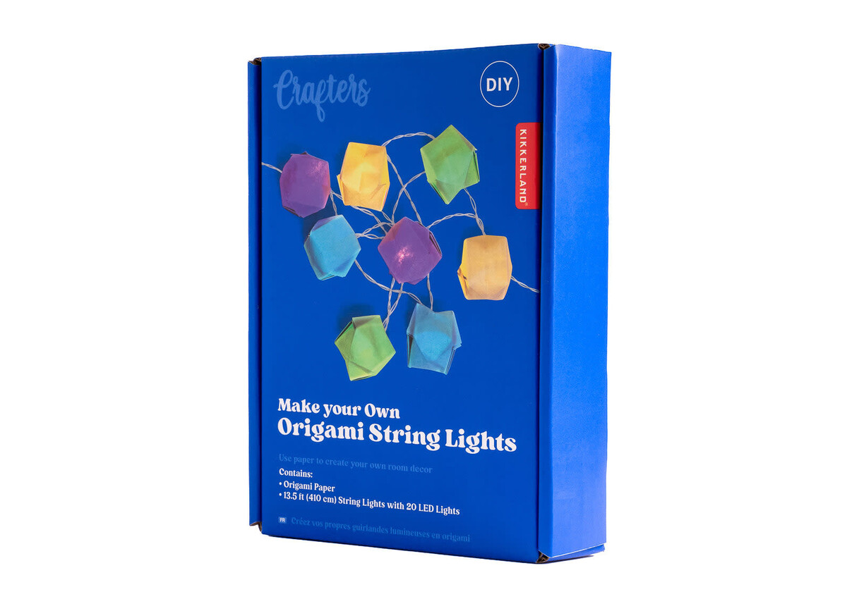 Transform your space into an origami wonderland. Use the origami paper and string lights included in this kit to make your very own paper lanterns! Includes 20 pieces of paper in 4 colors, 13-foot-long string light with 20 LEDS, and it is battery powered!