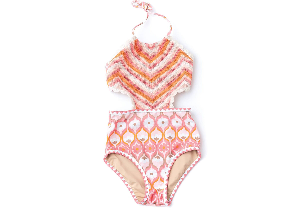 Is your daughter ready to make a splash at the pool in style this summer? Look no further than the Summer Sorbet Girls Crochet Halter One Piece Swimsuit. This elegant and beautiful crochet one piece will have her looking and feeling confident when she hits the water with friends or family. Her antics will be safe and secure with the adjustable neck and back straps, while the light and airy design ensures she doesn't overheat in the sun. And the sweet colorway in shades of pink, tan, and white reminiscent of a pink sorbet ice-cream will get her noticed for all the right reasons. Not to mention, the fact that she won't be dealing with an uncomfortable swimsuit all day! Give your daughter the chance to shine in style this summer. The Summer Sorbet Girls Crochet Halter One Piece bathing suit is perfect for pool parties and beach days. With so much style and grace, she'll be sure to stir up some excitement whilst staying cool and comfortable. So don't hesitate any longerorder one now and get ready to enjoy the summer in style!