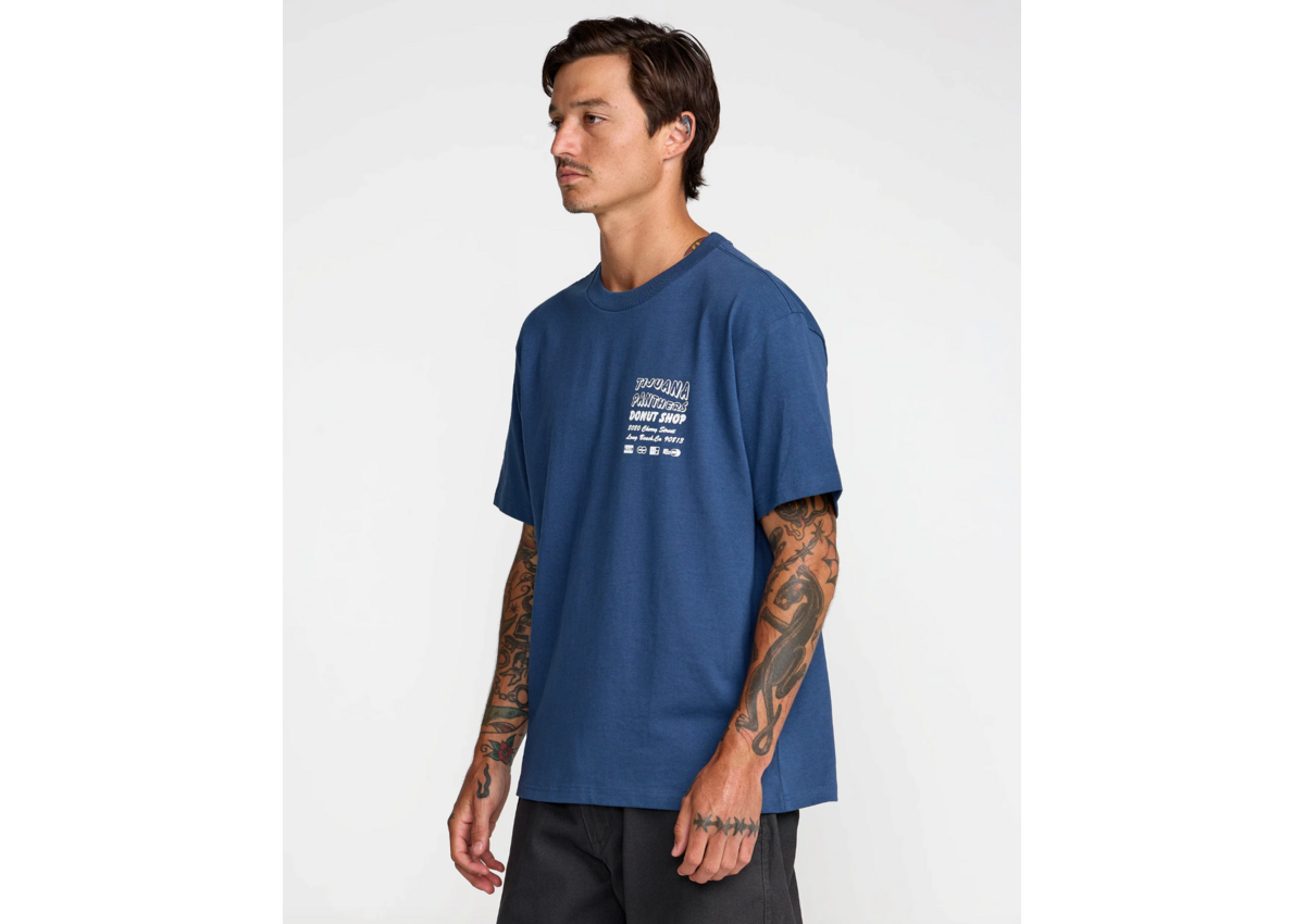The CS Donut Shop Short Sleeve Tee from the Artist Network Program x Tijuana Panthers collaboration delivers a laid-back, creative vibe. Crafted in dark denim 100% cotton, it’s cut for a relaxed fit with soft texture and sturdy feel, easily styled solo or layered.