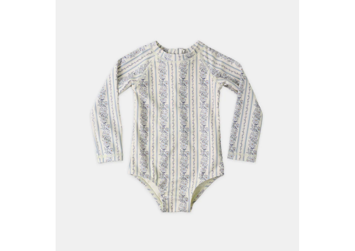 Our Delphine Rashguard One-Piece swimsuit will have your little one protected from the sun in style.