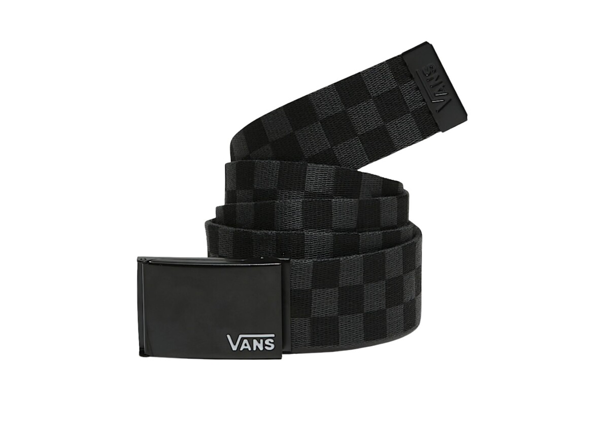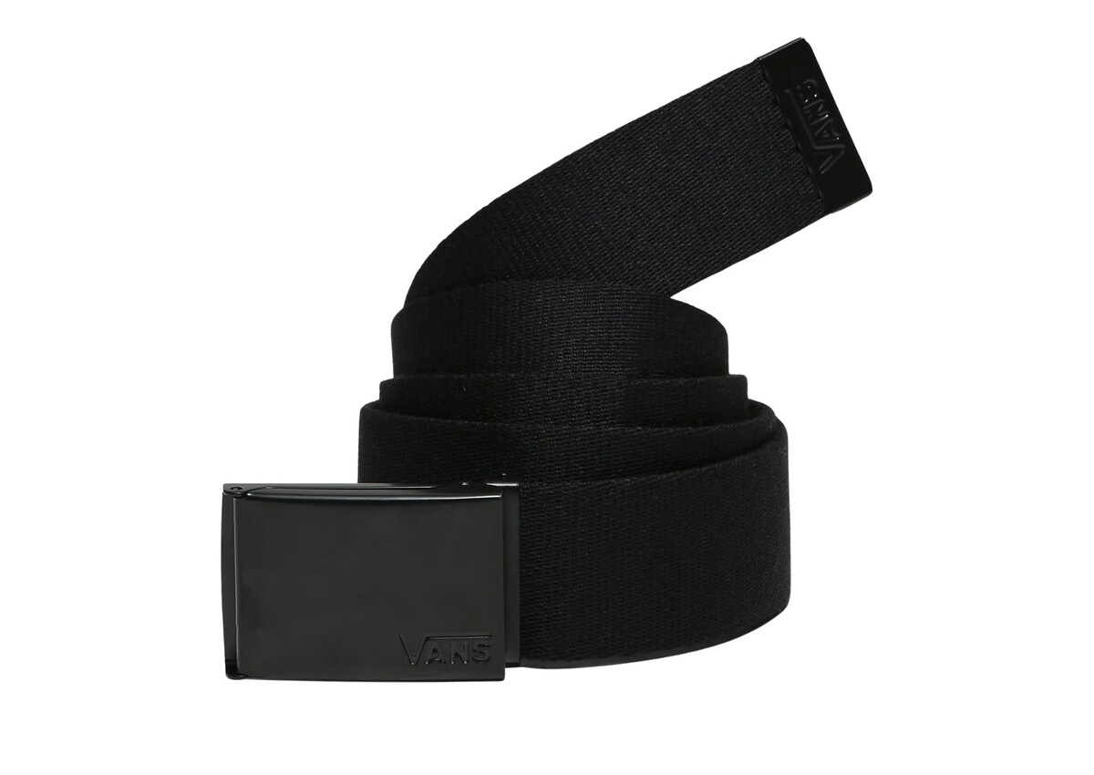 The Deppster II black web belt from Vans offer straightforward styling to round out your wardrobe. This woven design features a black adjustable buckle with an embossed Vans logo graphic on the front and a bottle opener on the back.