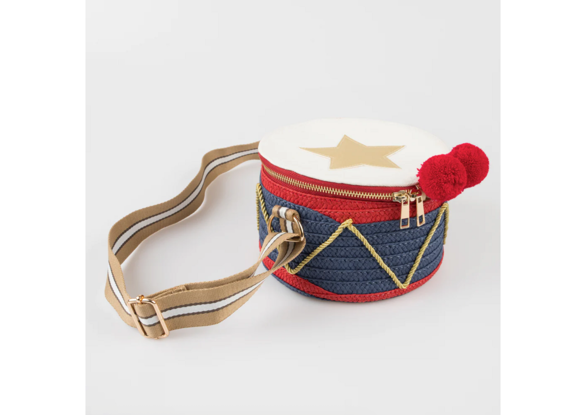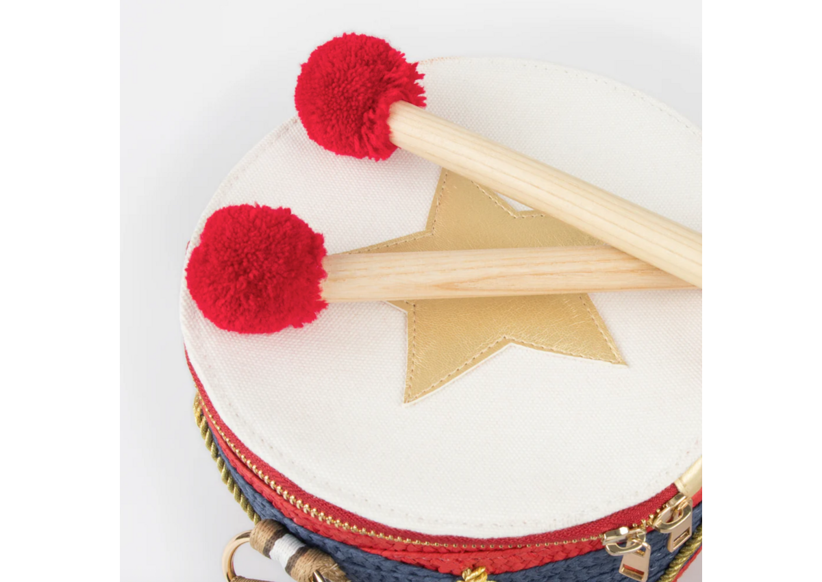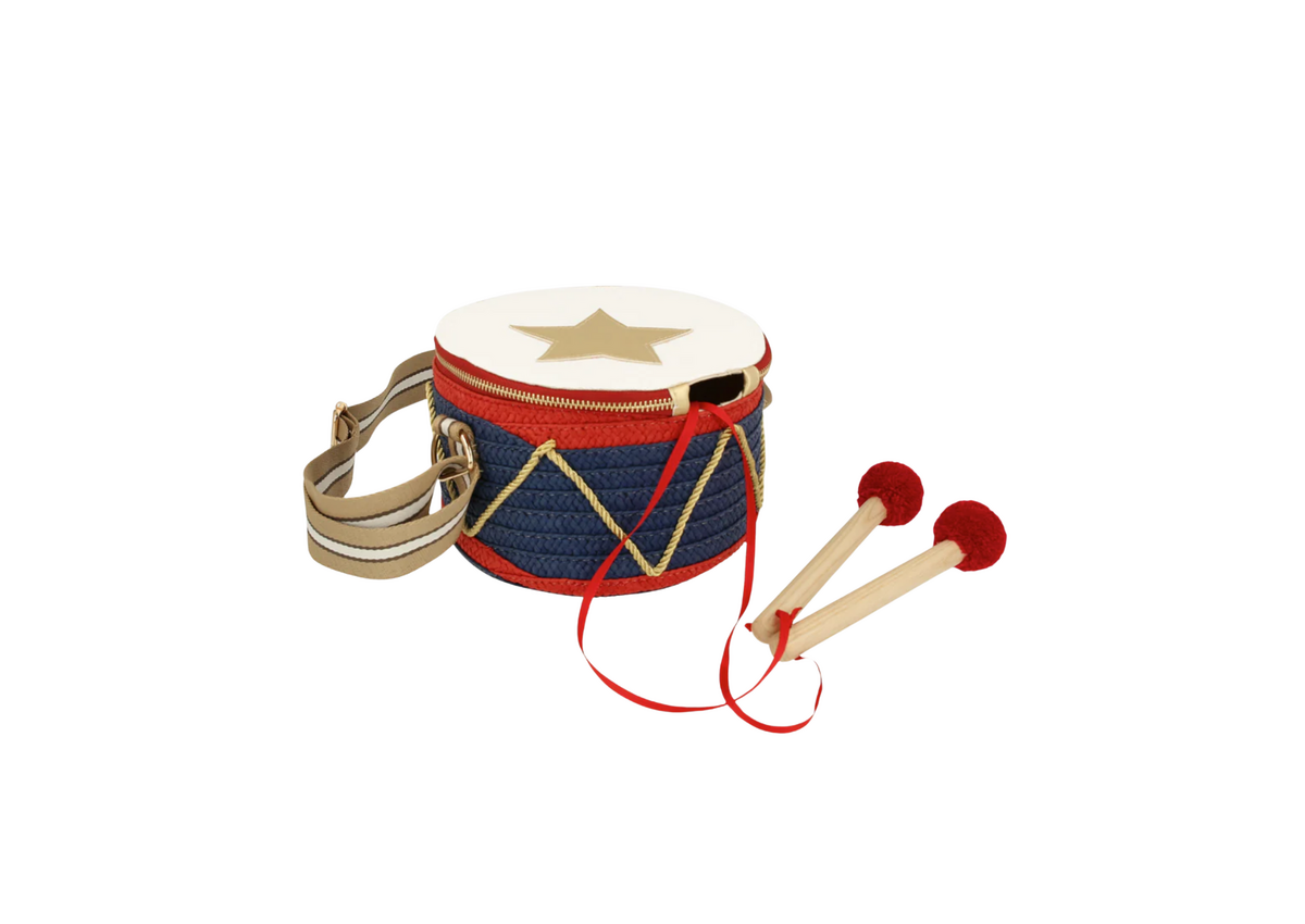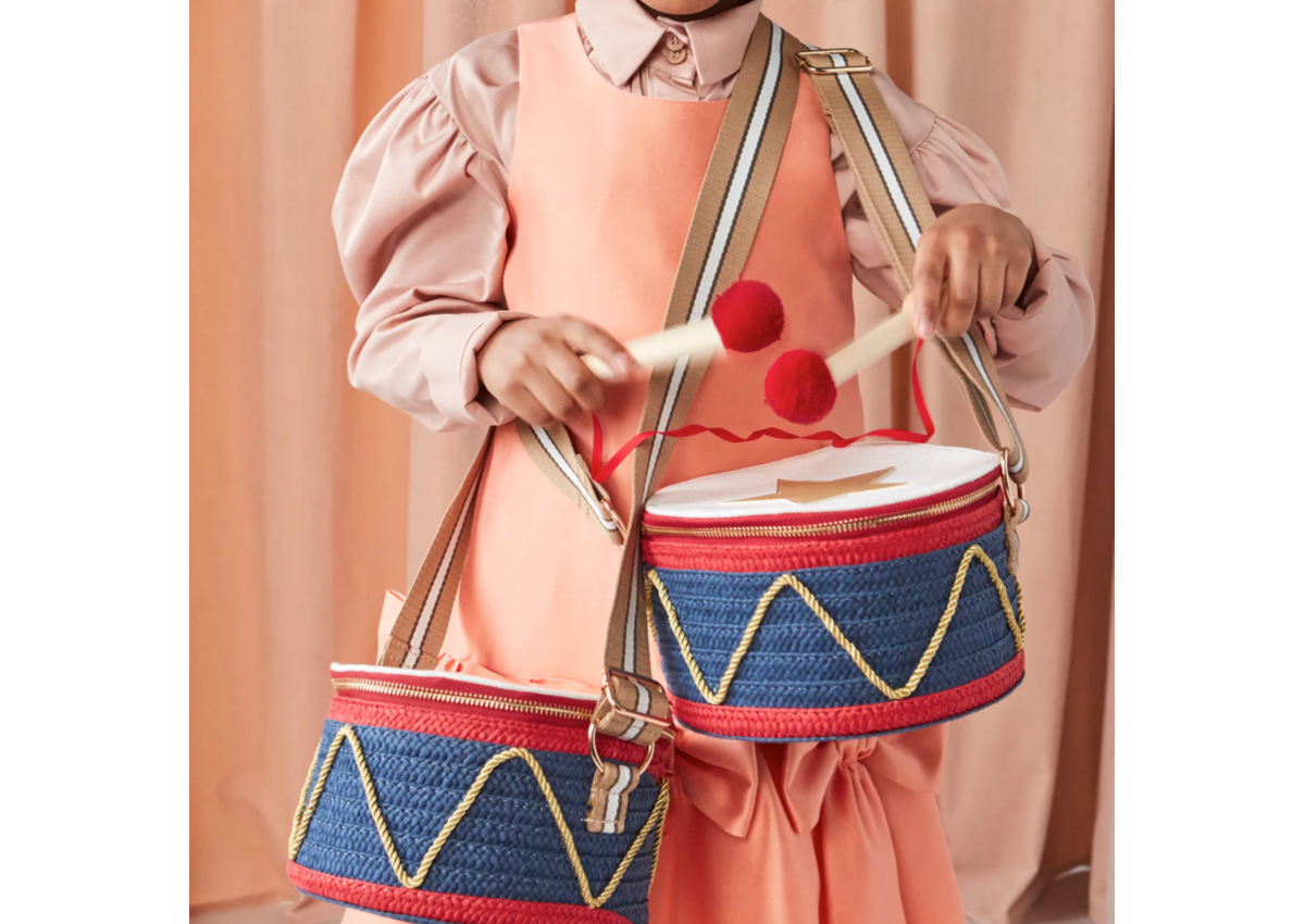 - Red satin ribbons attach the drum sticks to the inside of the bag, and you can easily slot them inside when they are not in use or on display