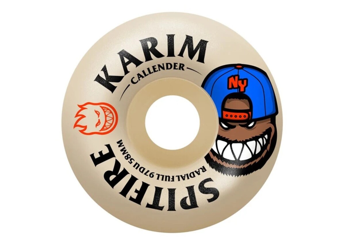 The Spitfire Formula Four 97d Karim Callender Burn Squad Radial Full Skateboard Wheels offer skaters a wide, smooth surface with a full radial shape for the perfect balance of stability and versatility. Constructed with a Formula Four Urethane and a middle of the road 97a durometer rating, these wheels are great for beginners who want more control on smooth surfaces but a smooth roll on rougher concrete too.