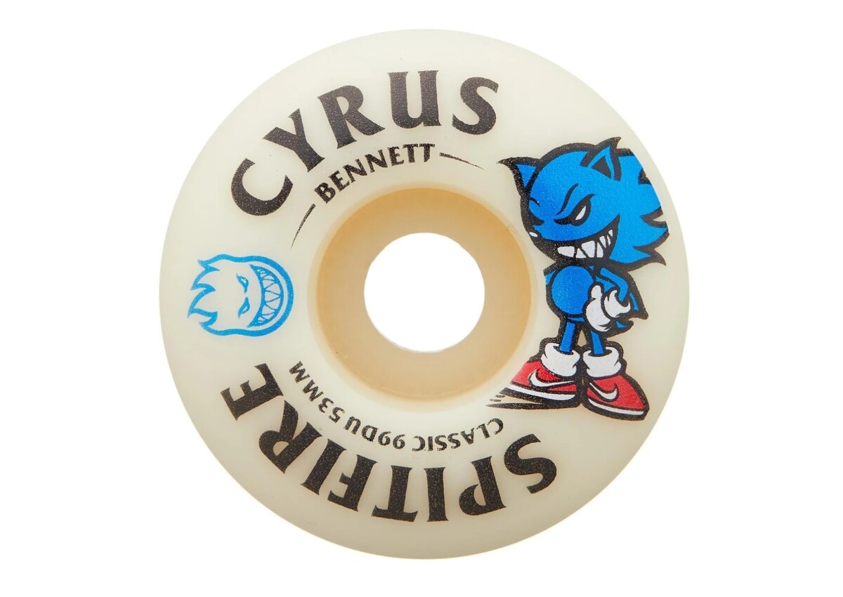 Ride the fire with the Spitfire F4 Cyrus Burn Squad Classic 99a Wheels. Designed with your favorite classic Spitfire Classic wheel designs and manufactured with the quality high performance, Formula Four urethane. Formula Four Urethane lasts longer, withstands more abuse and performs superior to all other wheels. Designed to combine all the desired properties of a performance wheel without sacrificing any one attribute at the expense of another. Manufactured using a 100% pure urethane compound, Formula Four wheels out-performed and resisted flat spots longer with less wear than all other wheels. Higher rebound for faster speeds over rough and smooth surfaces with a hard durometer for a smoother, faster ride that won't mush out over time. Designed with an exclusive anti-stick compund that gives a fast/consistent, smooth slide all the way through.