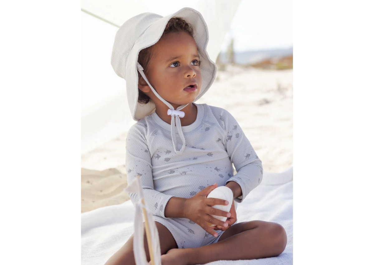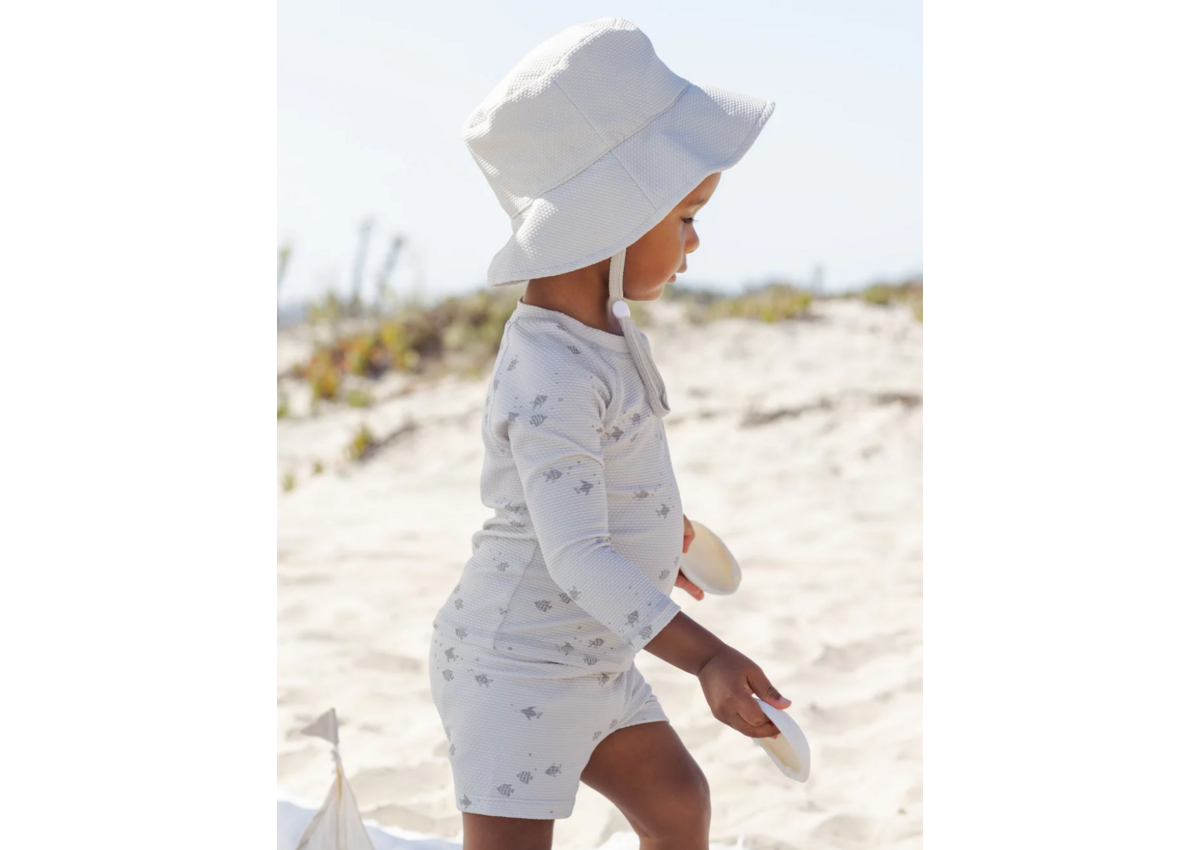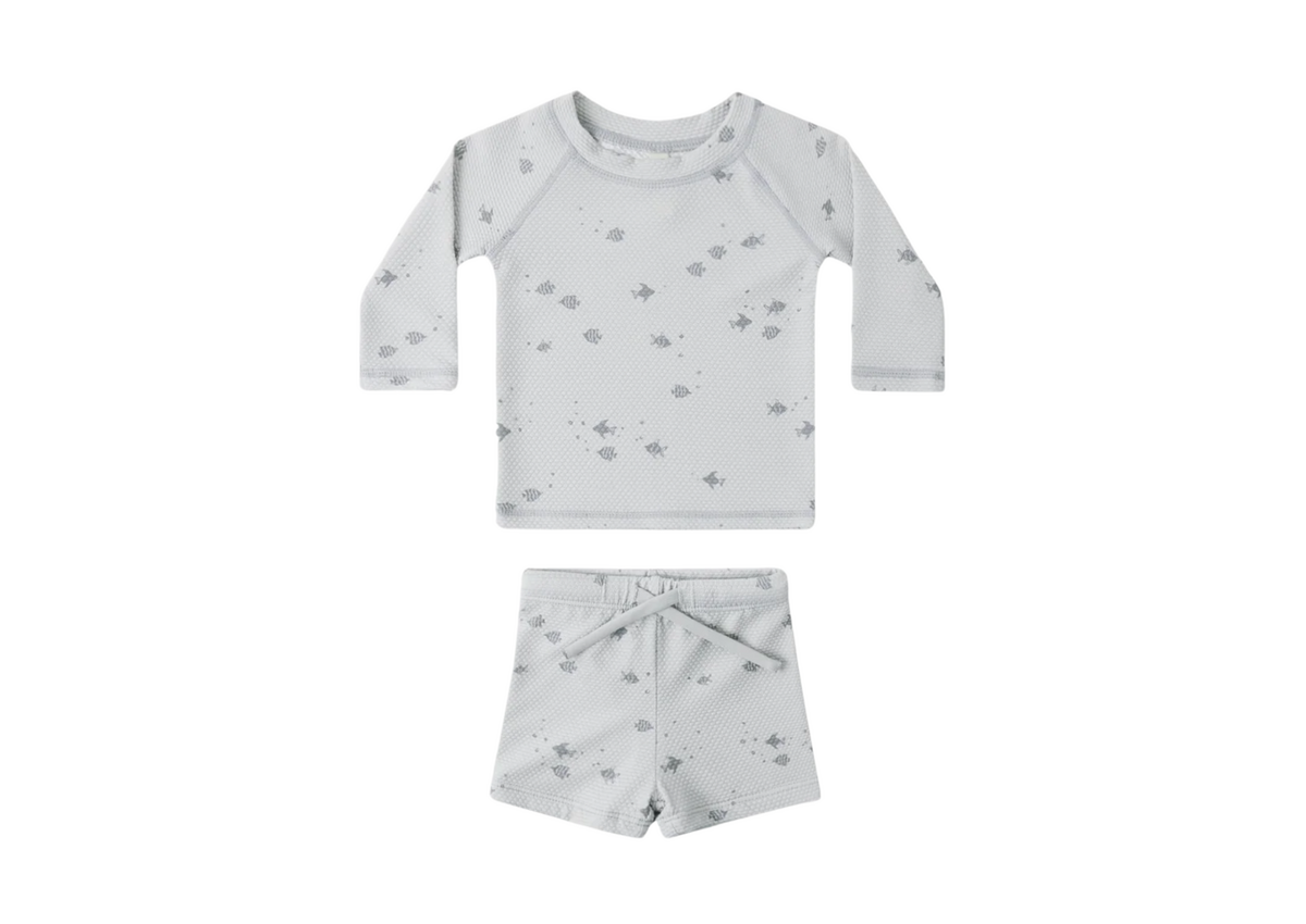 This two-piece rashguard set will keep your little one protected from the sun in style. Featuring a long sleeve rashguard top and coordinating boy short.