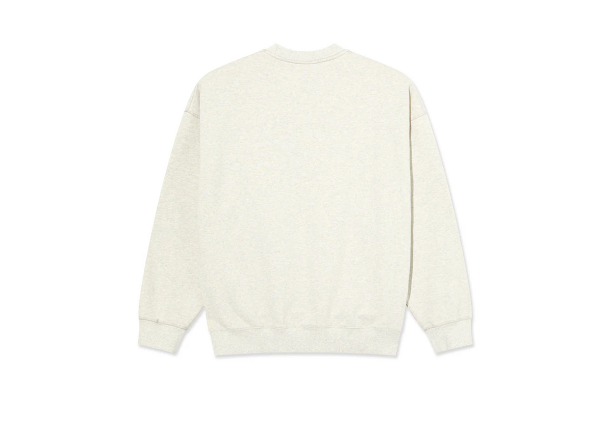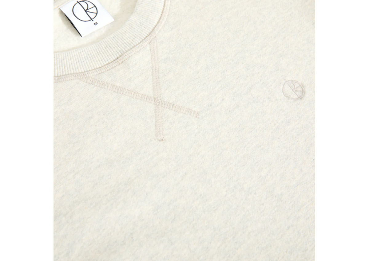 Wide-fit sweatshirt in heavyweight cotton fleece with a brushed, stone-washed finish. Bat sleeves and dropped shoulders create a relaxed, sculptural silhouette. Ribbed crew collar, cuffs, and hem frame the shape. Off-tone stroke embroidery and a V-insert add subtle detailing.