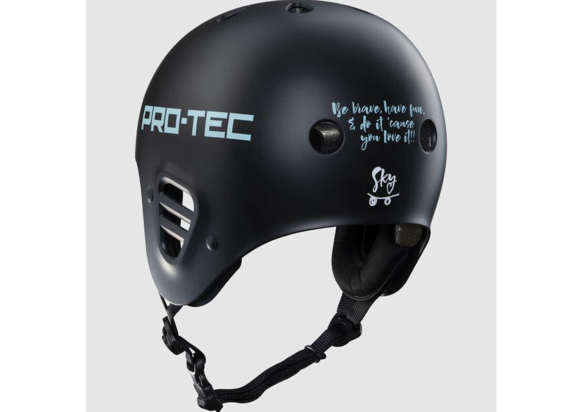 This original classic Full Cut style has been worn by a handful of top skaters and bikers over the decades. This era is no different with 11 year old Professional Skateboarder and British Olympic Team Rider, Sky Brown choosing to wear it and put her signature stamp and motto on it, "Be brave, have fun and do it cause you love it!!" - Sky Brown Available in both Matte Black and Baby Blue. Giving her (and you) options for what you feel like wearing that day. Available in XS-XL