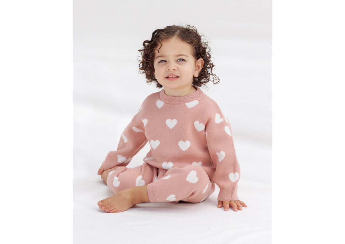 Heart eyes only for our Heart Knit Sweater. This cozy style is a must-have this season! Pair with matching Heart Knit Pants to complete the look.