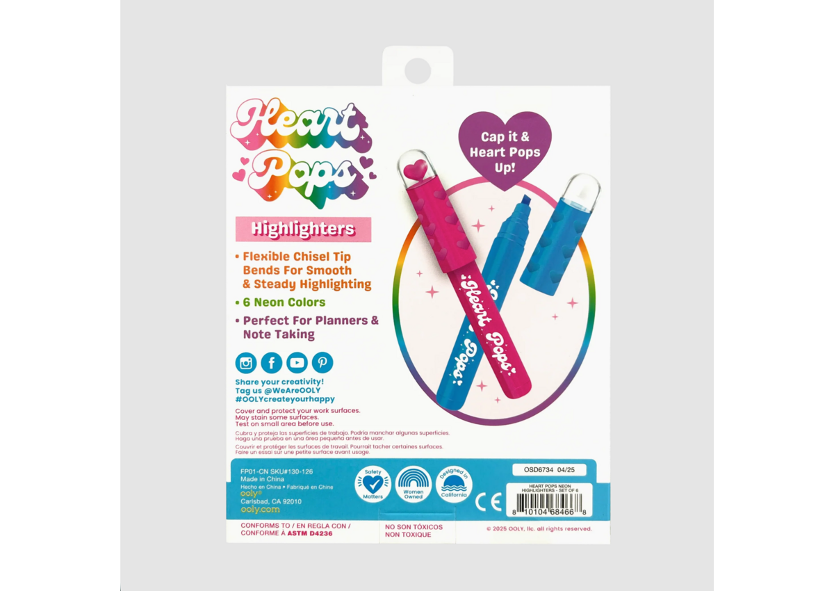 Heart Pops Neon Highlighters - Set of 6