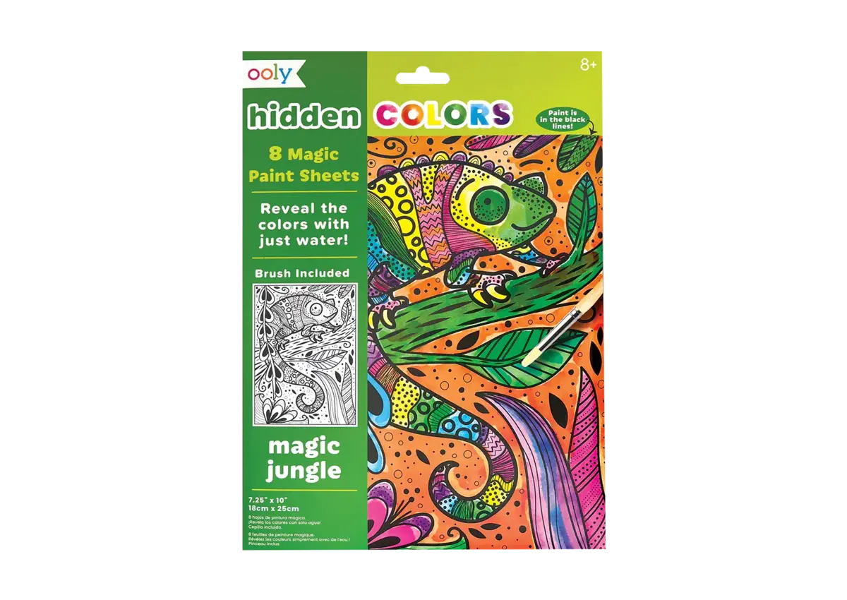 One thing the jungle is not, is black and white! Watch it come to life with just a brush of water when you use these hidden colors water reveal sheets. Eight different designs are included along with a brush. Just add water to begin your creative trek through this delightful jungle!