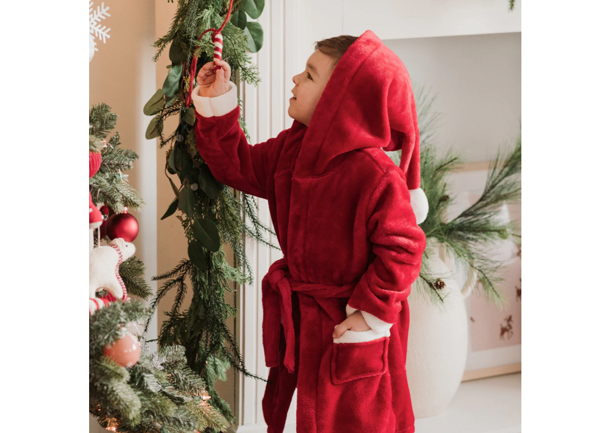Finish bathtime in festive style with this adorable Santa plush robe. Adorned with a Santa hat hood – complete with white pompom – this plush robe is a Christmas essential for your little ones.