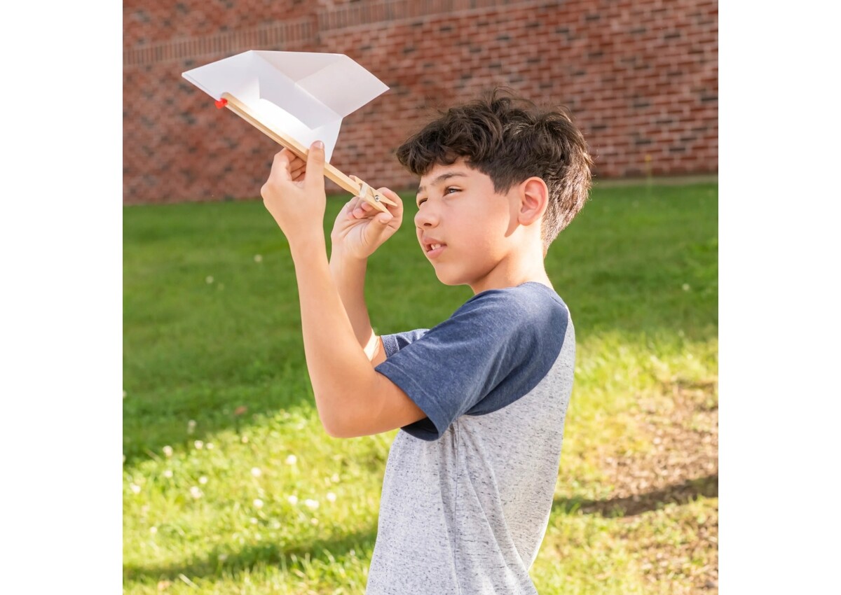 Watch your paper planes reach new heights! Use this FSC birch wood paper plane launcher to make your paper airplane fly faster and further.