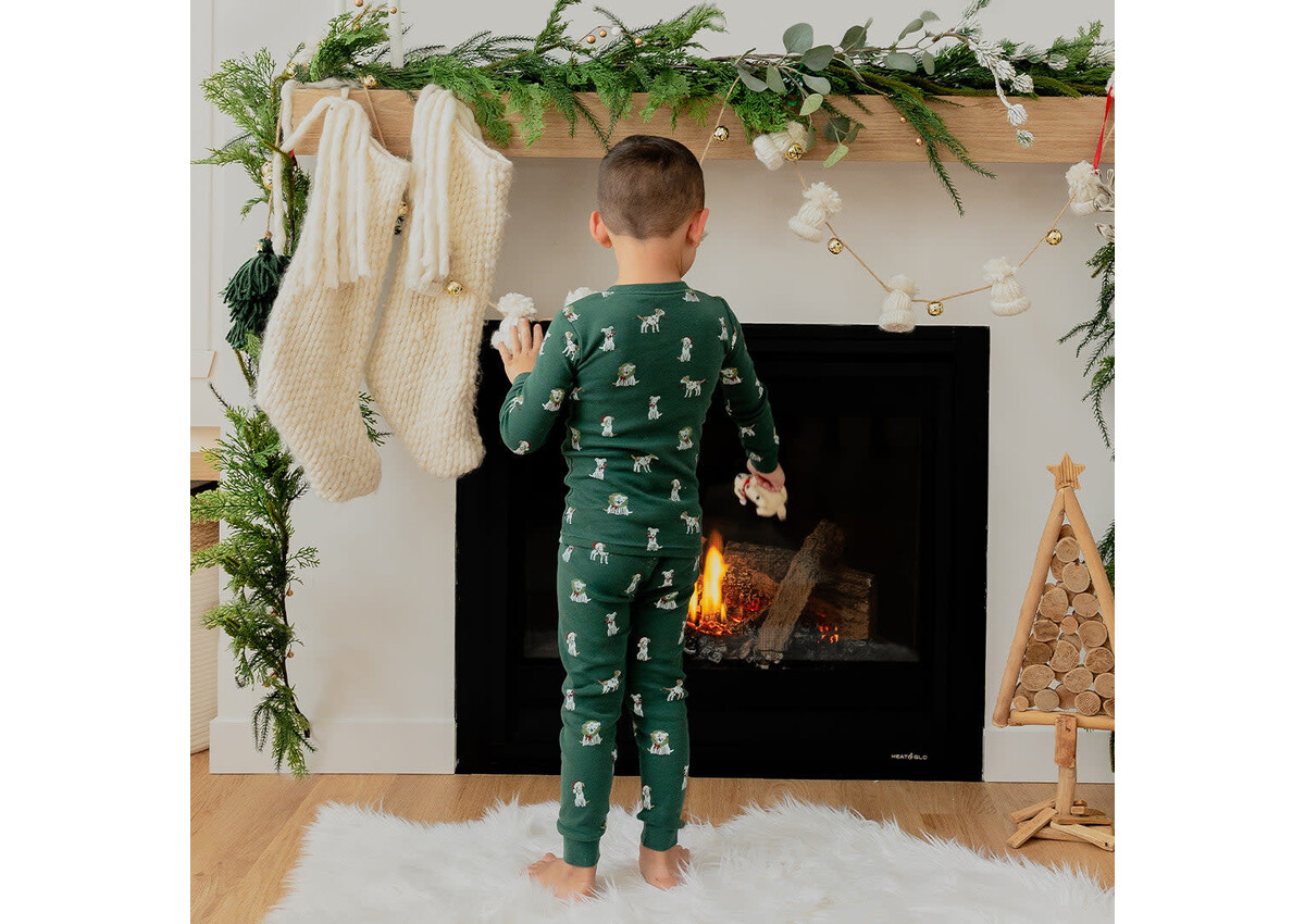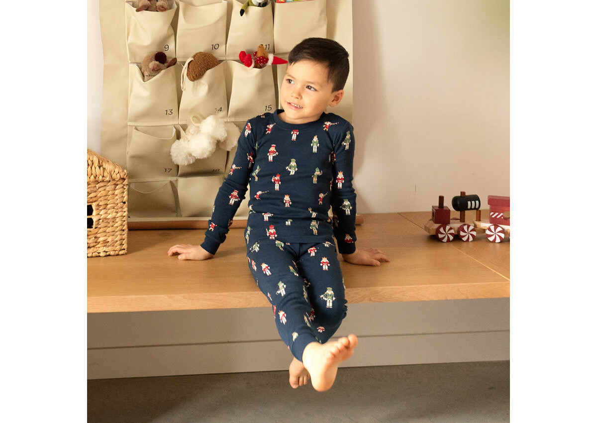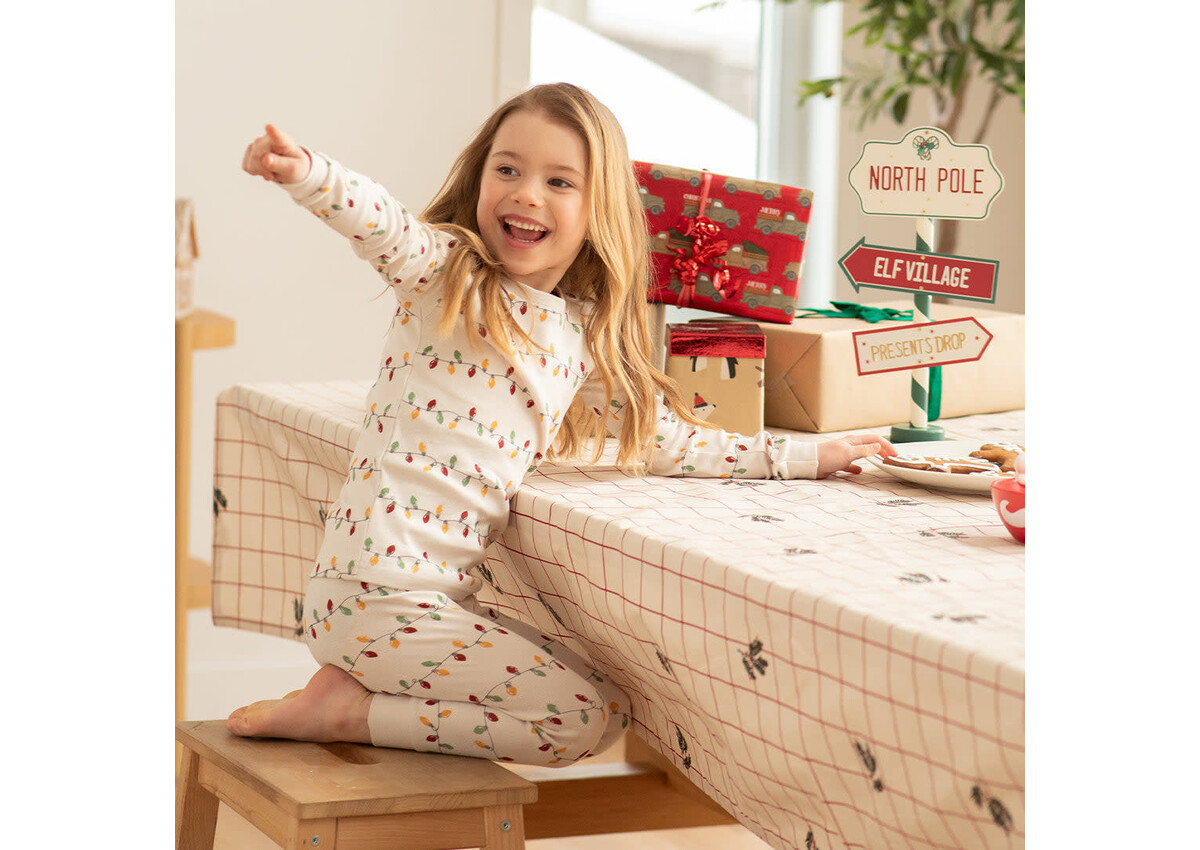 These PJ sets have a classic pattern printed all over which matches the sleeper from the same range. Let the kids match for a fun day of festive activities around the house, or for the perfect sibling photo. The two piece set has long sleeves and long pants for those extra chilly Winter days but are made from organic cotton rib so that they’re never too hot nor cold. The top has a rounded neckline which makes it easy to pull over sleepyheads while the elasticated waistband on the pants offers a supportive and comfortable fit.
