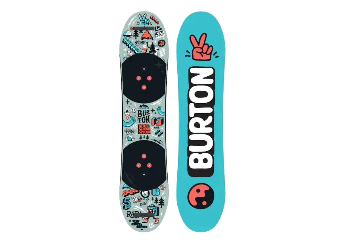 Even the kids know this is the best deal going. Better than watching hours of cartoons, the kids' Burton After School Special Snowboard makes learning a cinch with super soft, parent-friendly bindings and a saucer-like snowboard that teaches balance and board control. With the fully-adjustable bindings pre-mounted in a beginner-friendly stance, simply grab the package and go. It doesn't get any easier than this.
