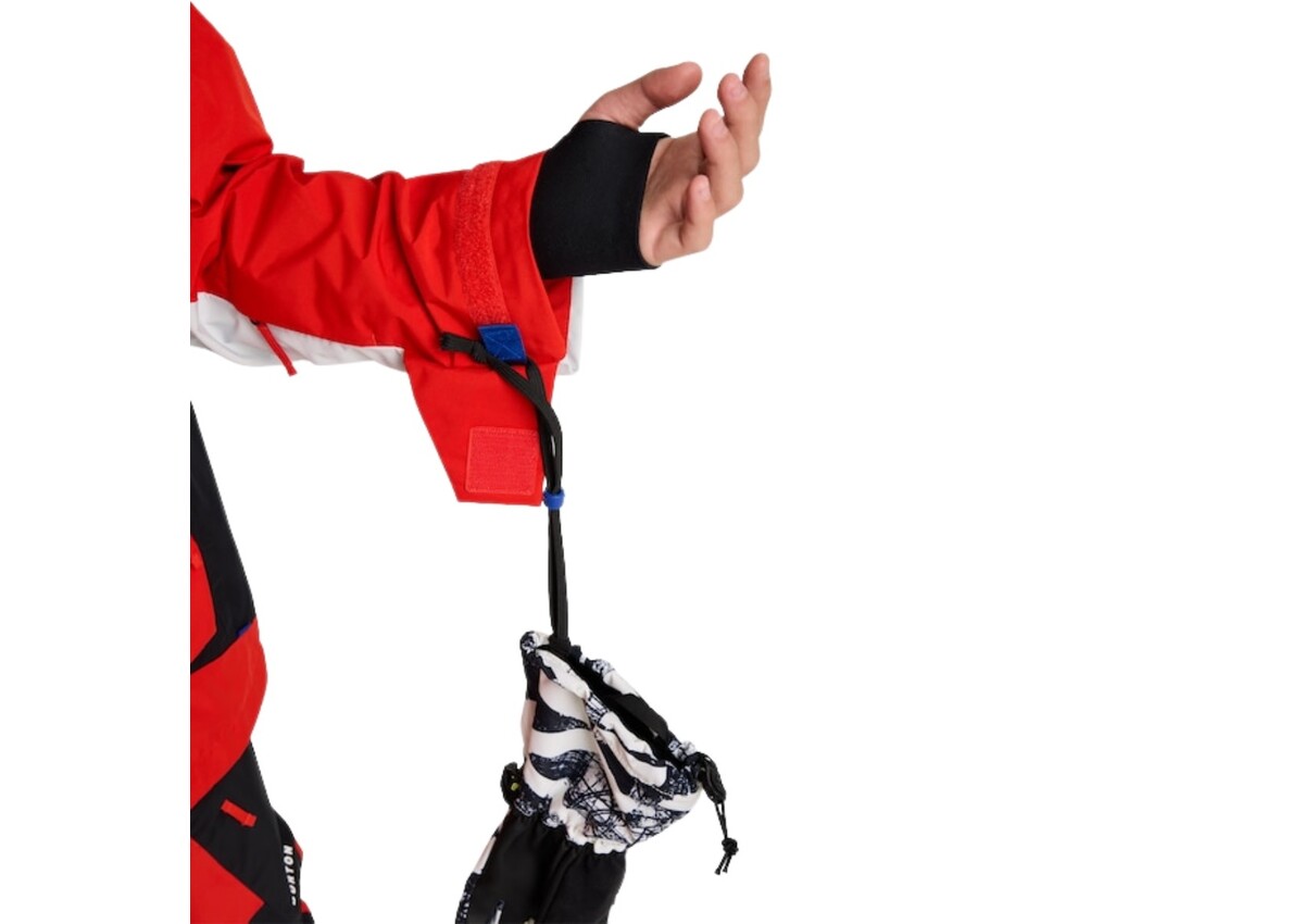 A variety of pockets including an Interior mesh dump pocket, media pocket with hook-and-loop closure, secure hand-warmer pockets, and a zippered pass pocket on the sleeve keep kids organized and riding.