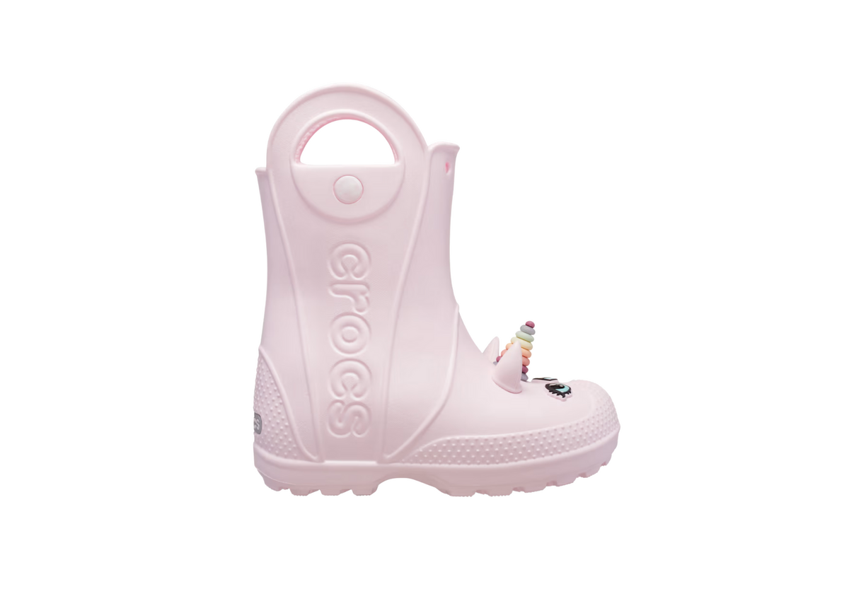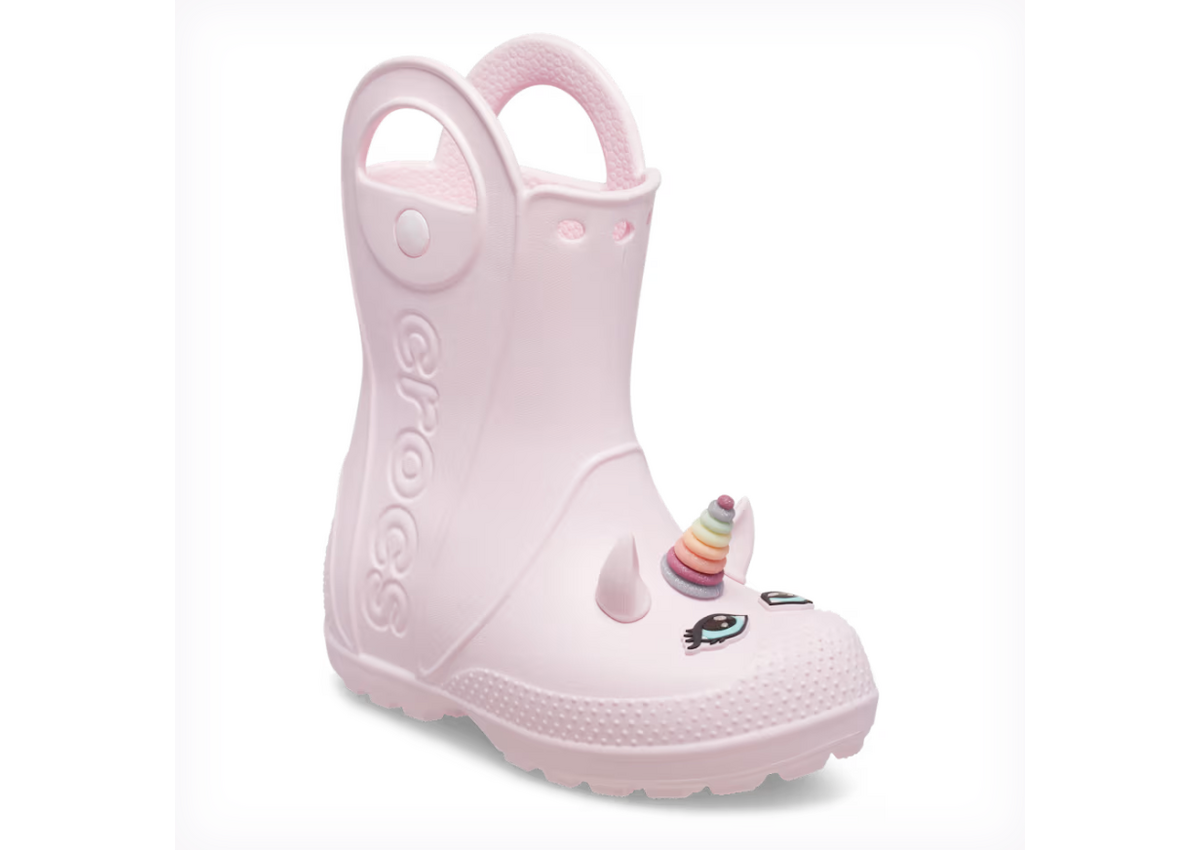 Add a touch of magic to rainy days. The Handle It Unicorn rain boot for kids guarantees the comfort and waterproof protection that Crocs are known for, in a unicorn-inspired design. And its extra-large handles make them easy for kids to put on and take off. These boots will let them jump in puddles and have fun!