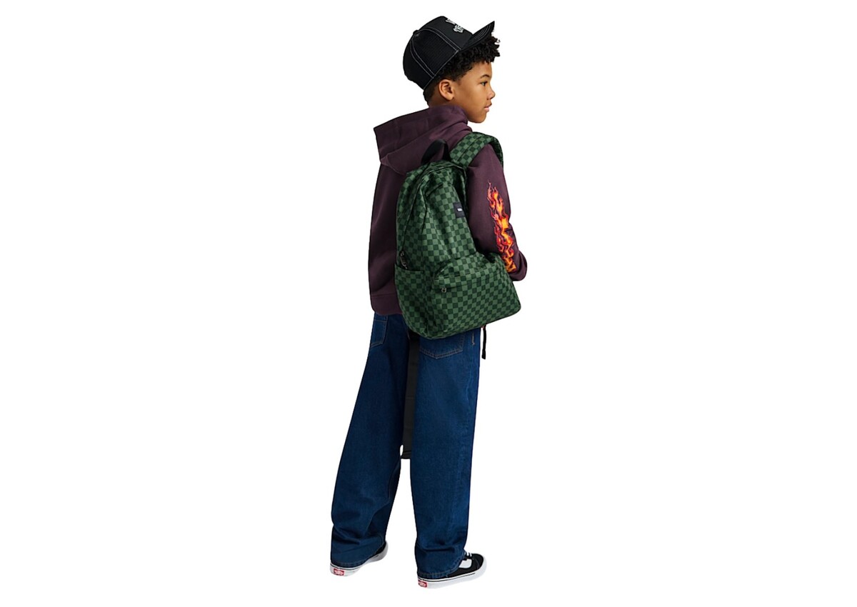 A classic backpack with plenty of Vans® DNA, the Kids Old Skool Grom Check Backpack has a two-pocket design featuring a slip-in organizer to keep your important items neatly arranged and a side water bottle pocket for easy hydration. To add more style, the backpack has our iconic checkerboard print and the Vans® logo.