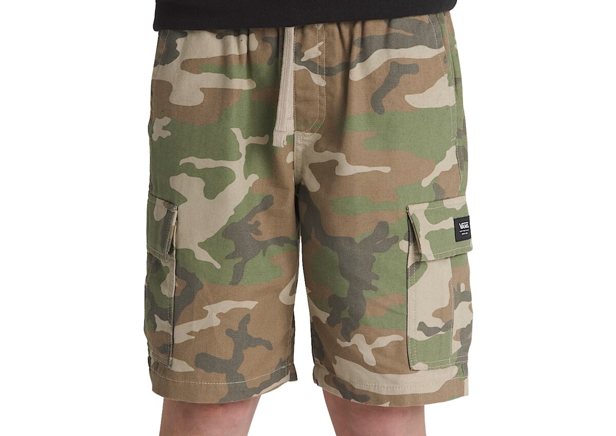 The Range Cargo Loose Shorts are an everyday, durable cargo short with tons of pockets to stash stuff. Featuring an allover cargo print, these shorts offer a drawstring waist to adjust your wear for comfort, with signature details like a Vans® flag label on the pocket.