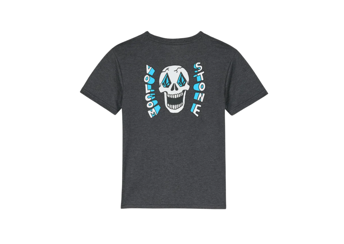 Big Kids Skeltone Volcom Tee, Heather Black.