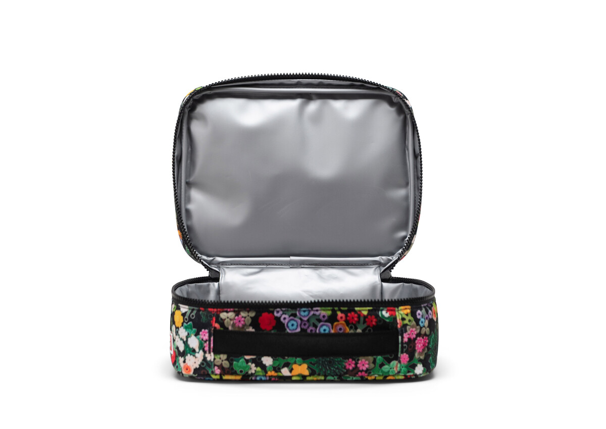 Their lunchtime companion. This durable lunch box holds snacks and sandwiches in an insulated main compartment that wipes clean. Bring it to a picnic or on journeys to the playground, cafeteria and beyond.