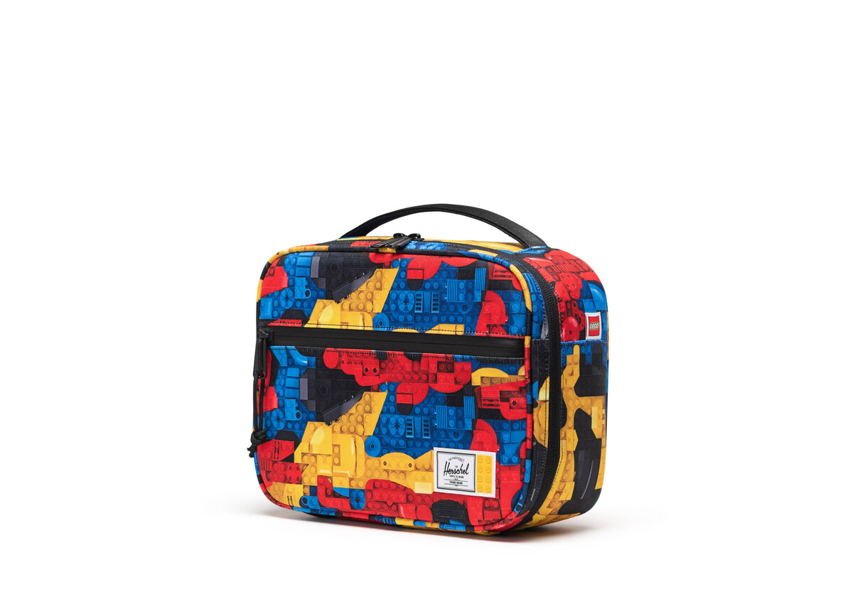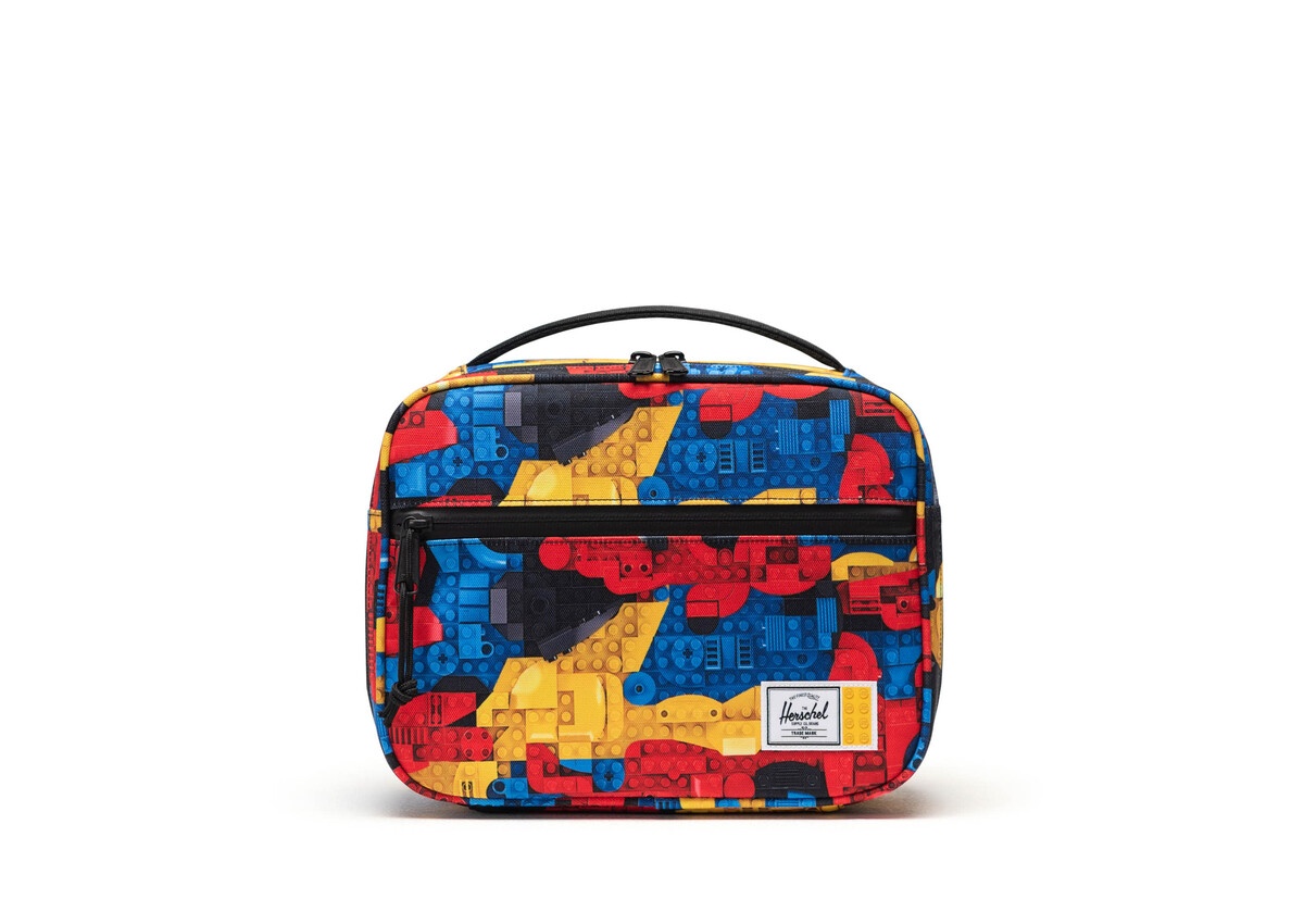 | Herschel x LEGO® Collection. Pack their favorite snacks in this limited-edition lunch box, reimagined with custom LEGO prints and labels. Featuring an insulated main compartment that wipes clean, it's the perfect lunchtime companion for picnics, playground adventures, the cafeteria and beyond. |