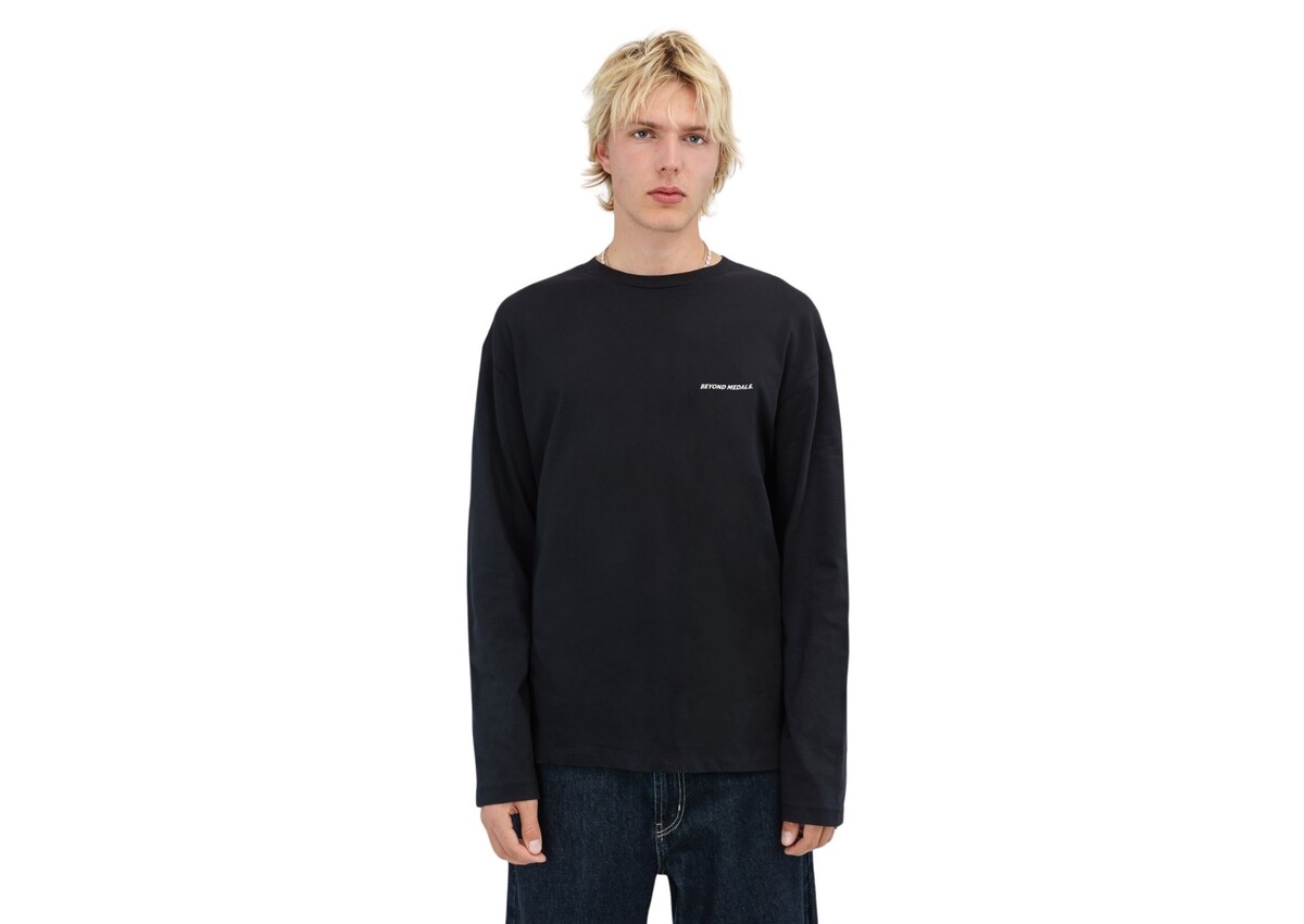 Regular fit long sleeve with ribbed collar. Print on chest and back.