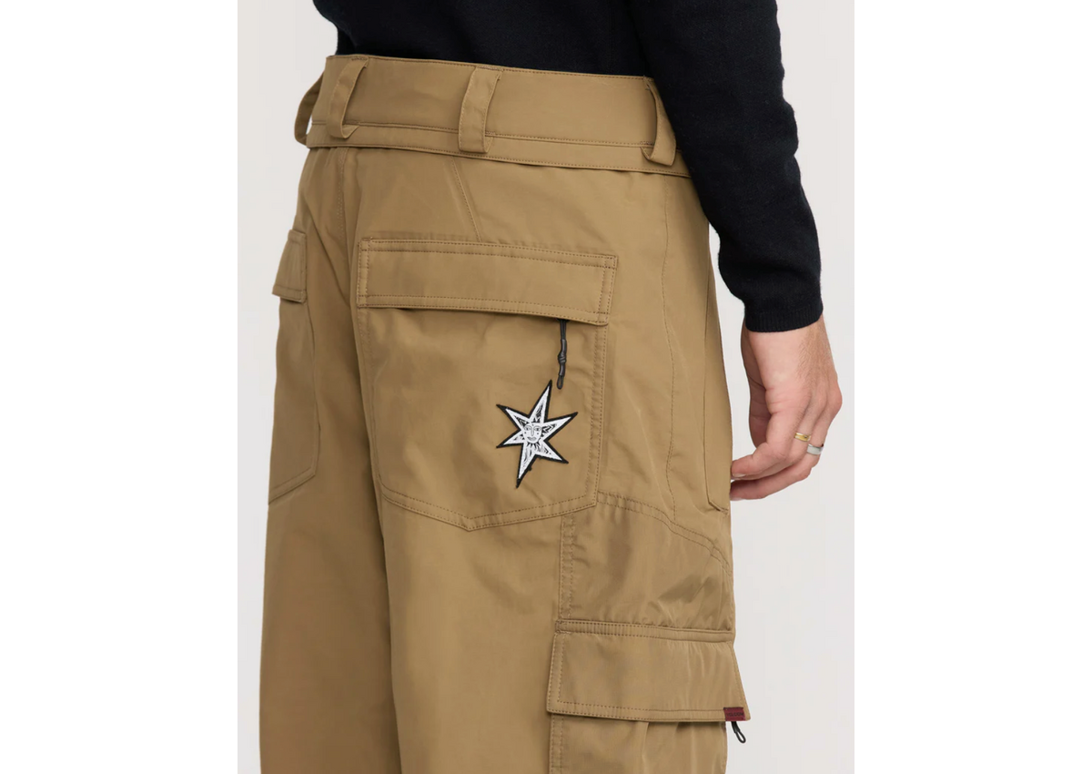 Loose cut for maximum comfort on the move. Mesh-lined, zipped ventilation provides excellent thermal regulation, while the adjustable inner waistband and triple-reinforced construction at the crotch ensure durability and support. Hand warmers lined with brushed knit, functional cargo pockets and back pockets offer generous space for gear. The Jacket-Pants Attachment system Zip Tech®A drawcord-adjustable lower leg and stretch gaiters with hook-and-loop fastenings complete a pair of trousers designed for the most demanding conditions. A signature felt star patch at Arthur Longo marks a silhouette that is both technical and resolutely stylish.