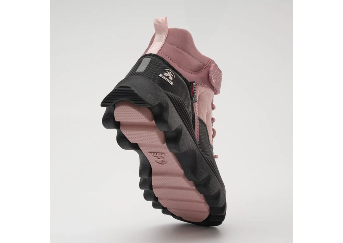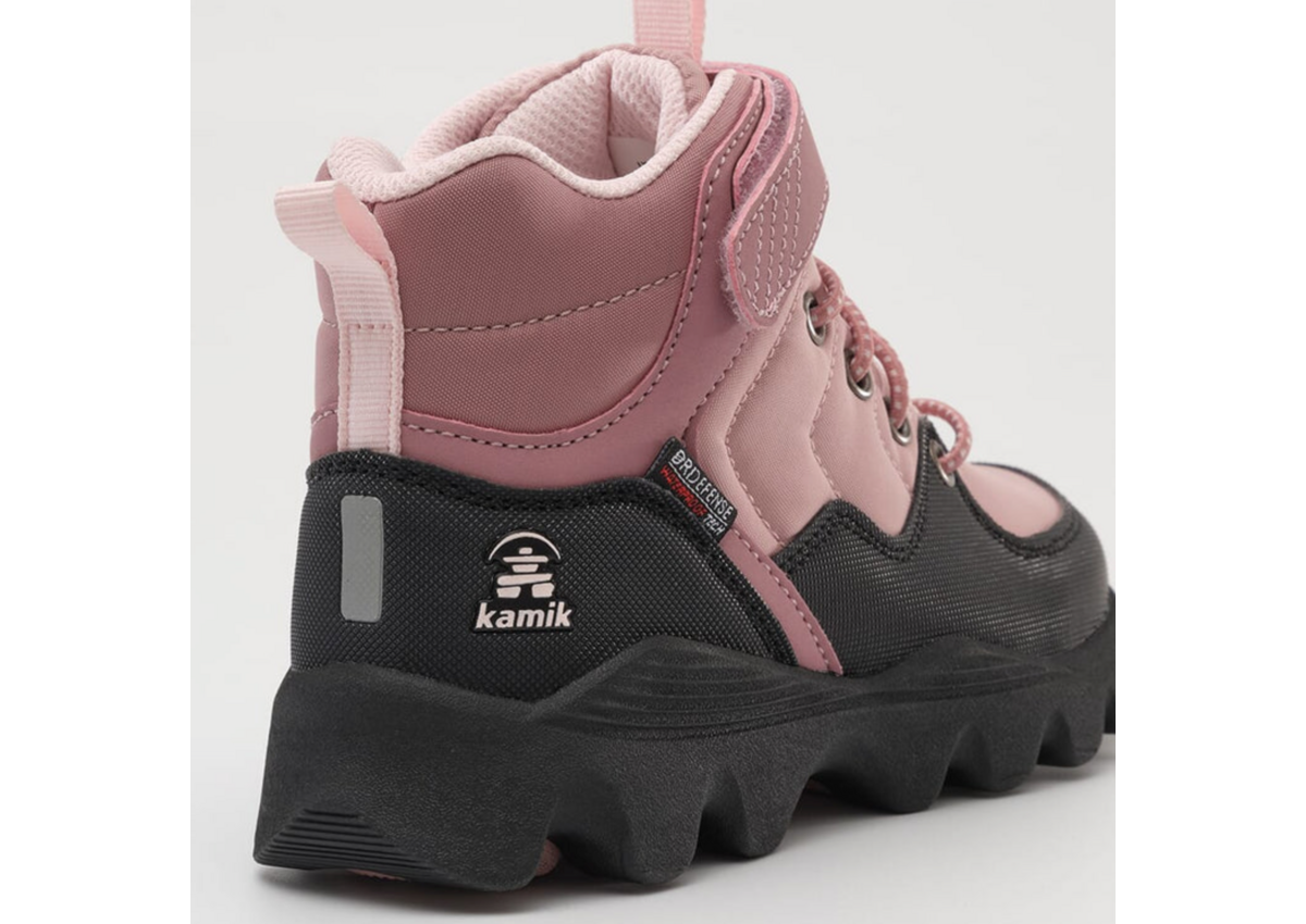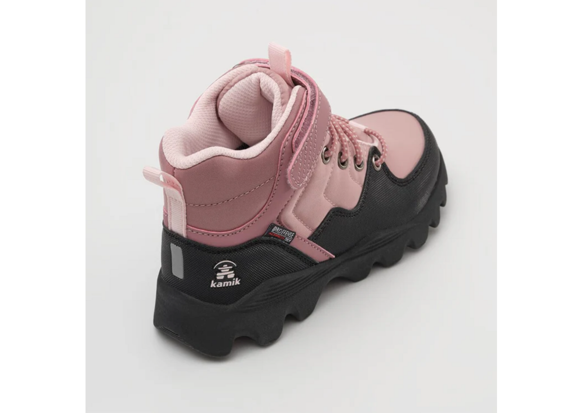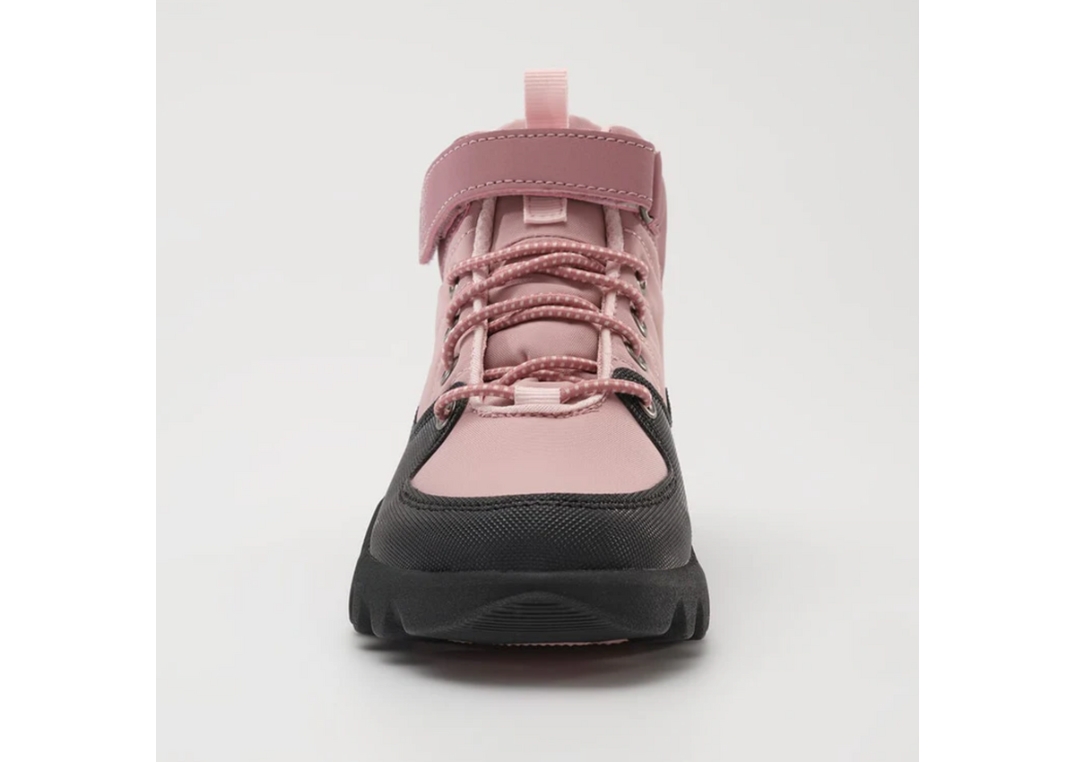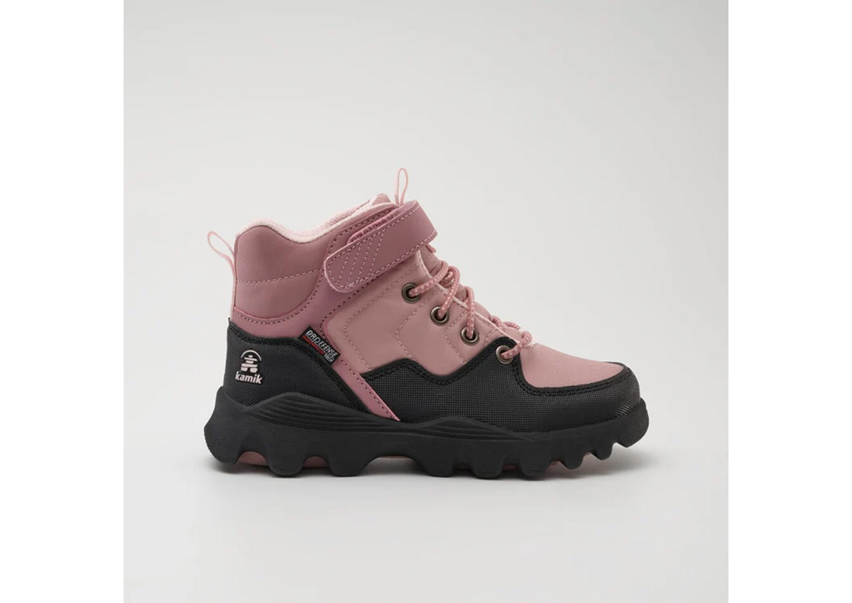 Autumn adventures await with our Lynx Mid kids' fall shoes! The waterproof nylon and synthetic leather upper with a moisture-wicking fleece lining keep feet dry and cozy. The bungee lacing system with an elastic strap ensures a secure fit, while the EVA foam footbed provides all-day cushiony support. The lightweight synthetic EVA and rubber sole offers superior traction for navigating wet leaves and grass!
