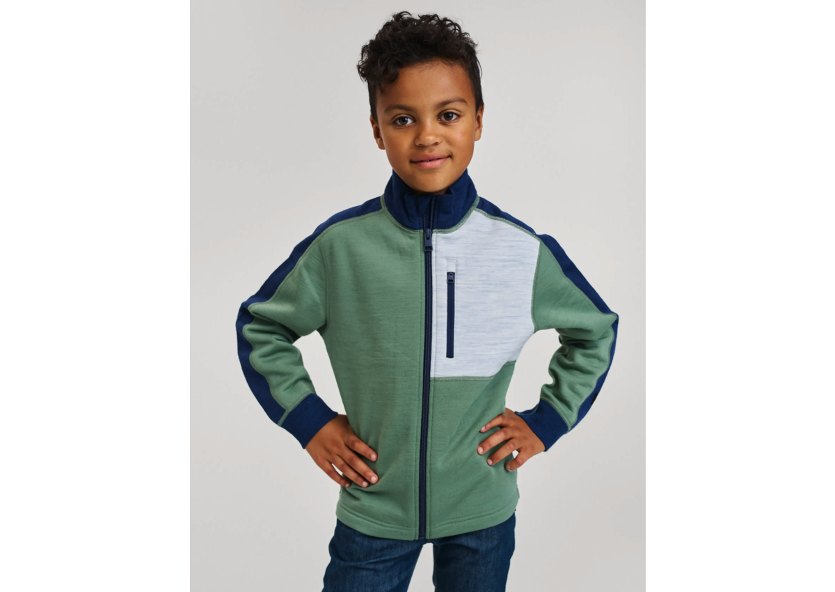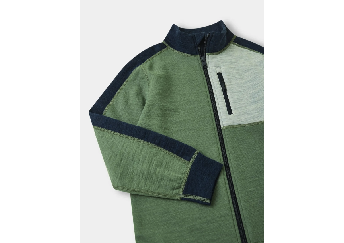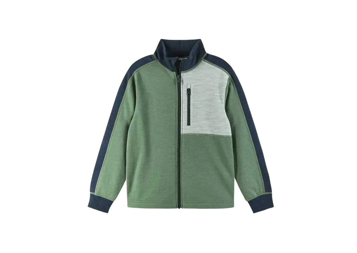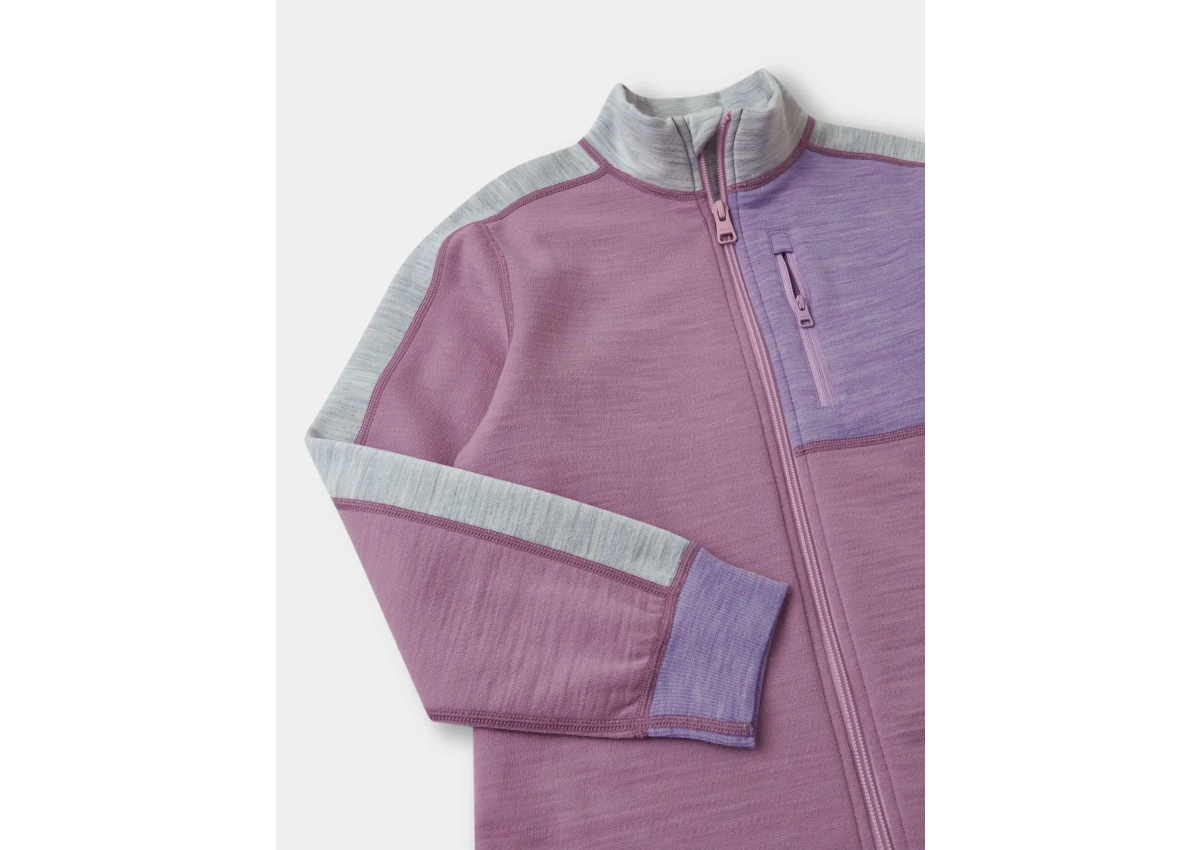 Perfect for layering or wearing on its own, this wool jacket is a versatile choice for kids. The breathable material ensures warmth without overheating, making it ideal for active children. A full-length zipper allows for easy on and off, while the chin guard prevents irritation. It also features a handy zipper pocket for securing small essentials. Soft, flat seams enhance comfort, preventing chafing during wear.