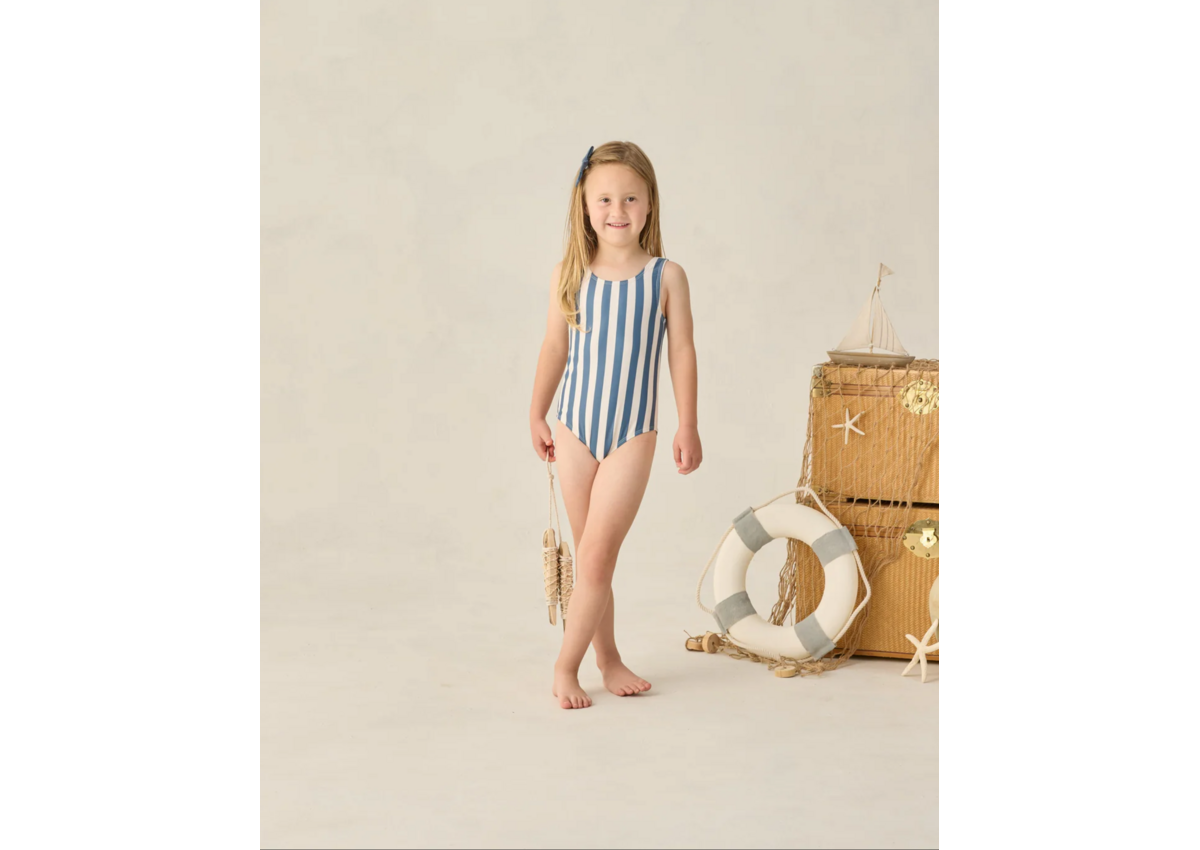 Featuring our 'navy stripe' all-over pattern. This stripe one-piece is perfect for a timeless summer look.