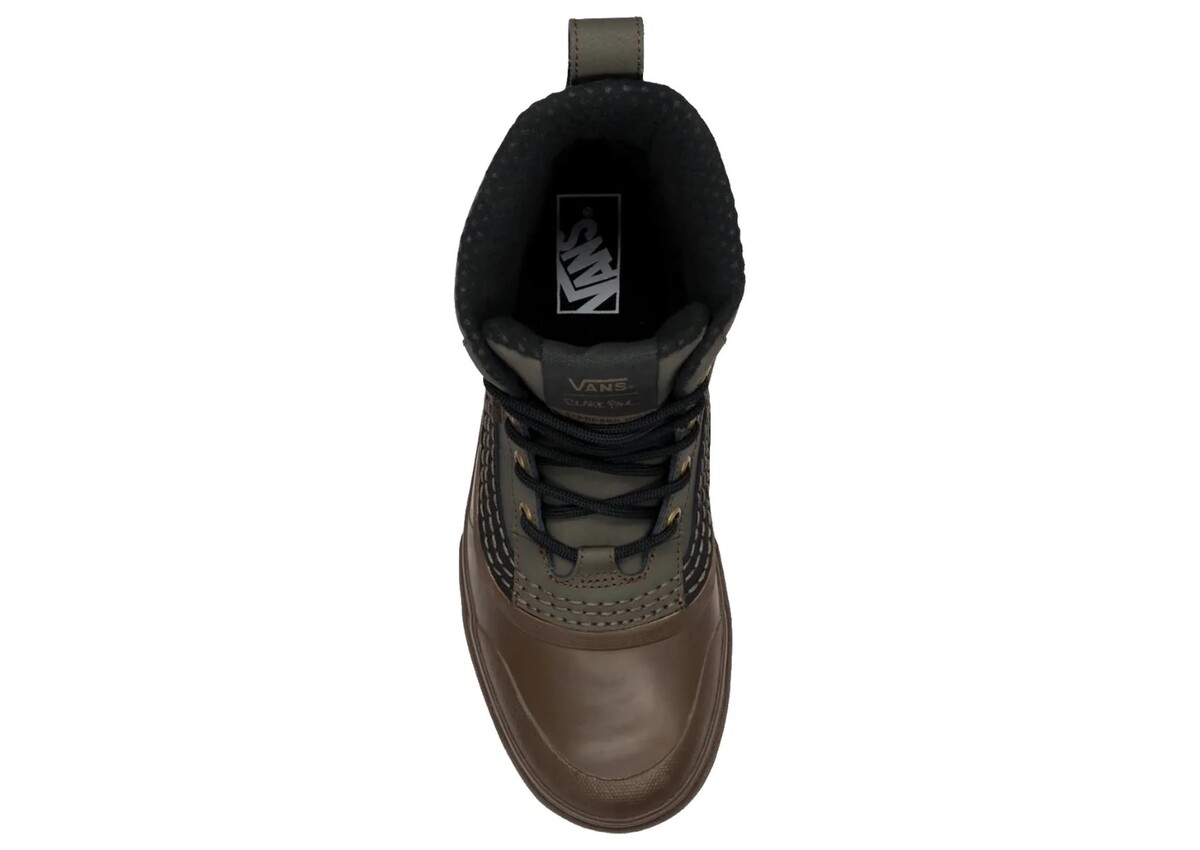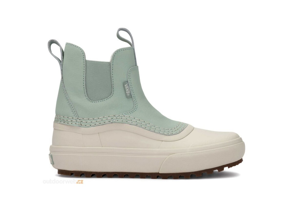 Practical, packable, and wear-at-the-bar-able, the MTE Standard Mid Chelsea Waterproof Boot is a downsized version of Vans best-selling Standard snow boot with easy slip-on access. Featuring a waterproof vulcanized lower, waterproof seam-sealed construction, 100-gram weight insulation package, and a Standard Snow MTE outsole featuring All-Trac all-terrain rubber, classic Vans style and day-to-day winter weather footwear have finally converged. This mid-top boot features stretch gore at the opening, and is made with leather and rubber uppers.