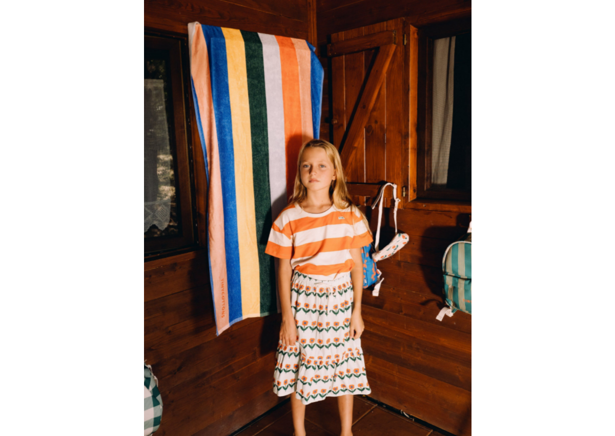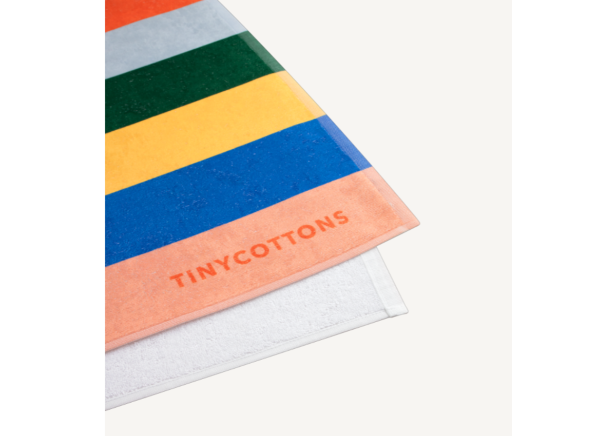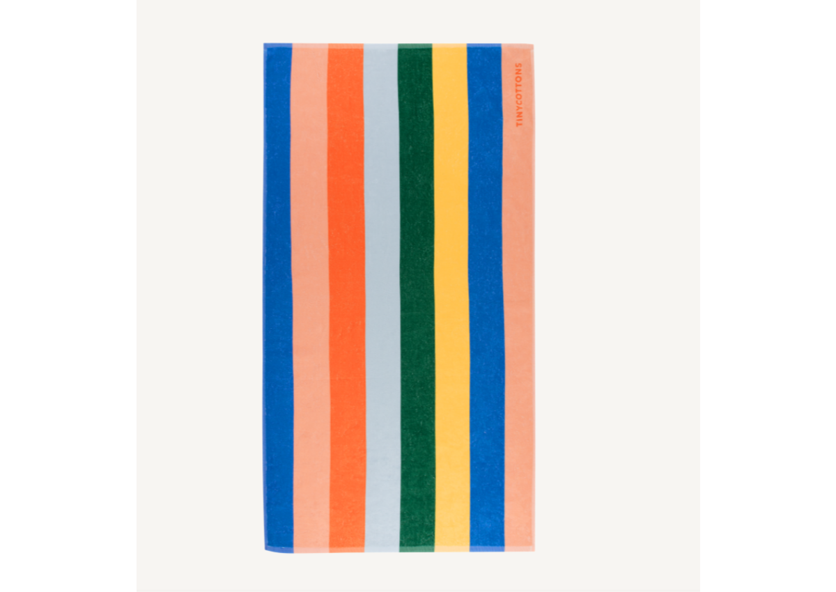 Stripes inspired by the colors of Paraíso Tiny. This bold stripe towel comes with a soft-on-the-skin cotton layer on the back.