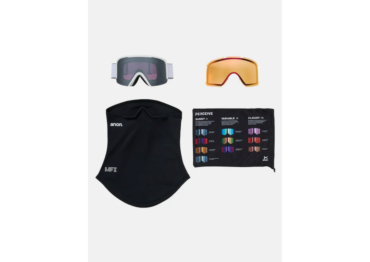 The Anon Nesa Goggles combine a sleek, modern profile with a wide field of view and the clarity of Perceive lens technology. A cylindrical lens and semi-frameless design maximize the field of view, while Perceive lens technology enhances contrast for the best possible definition and terrain recognition. They feature our exclusive magnetic face mask integration (MFI®) for seamless coverage from snow, wind, and sun when used with our compatible hoods and face masks. They are over the glass compatible for wearing with eyeglasses and include two Perceive lenses, an MFI face mask, plus a microfiber bag for storage and lens cleaning.