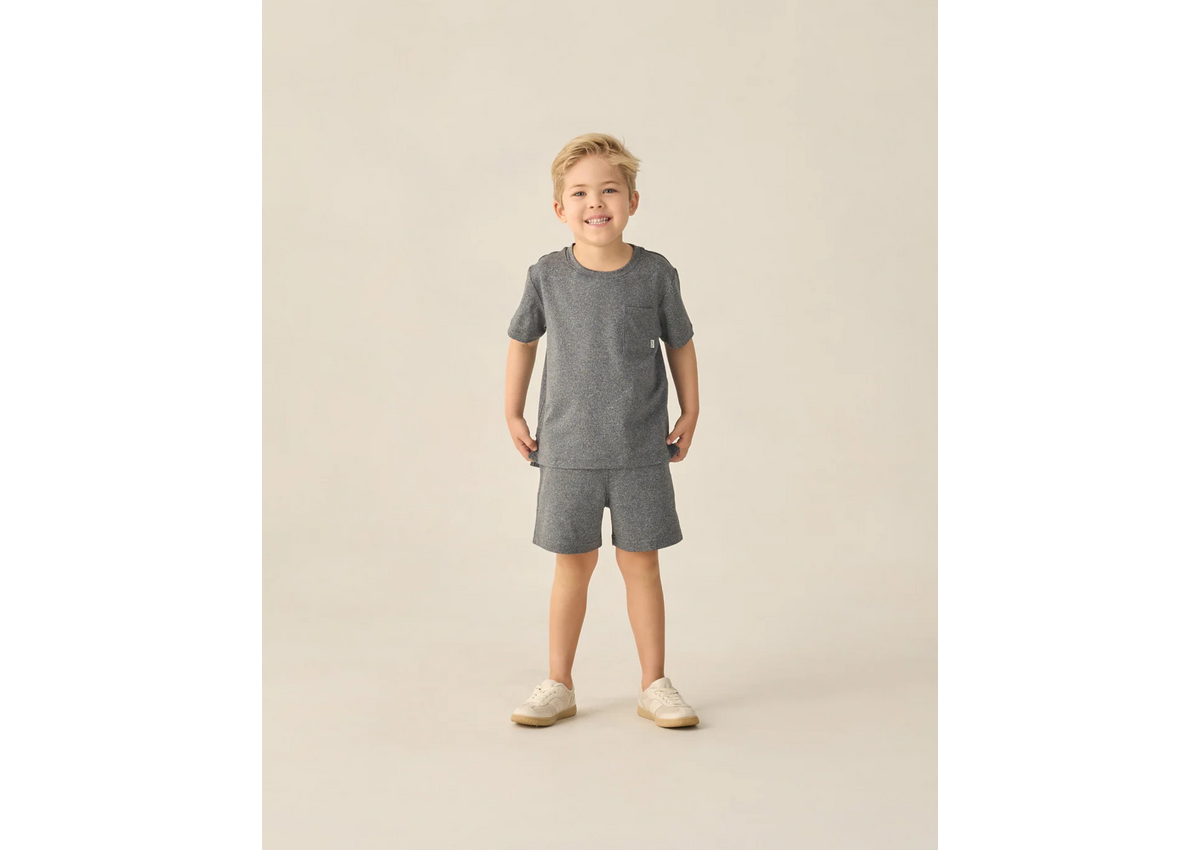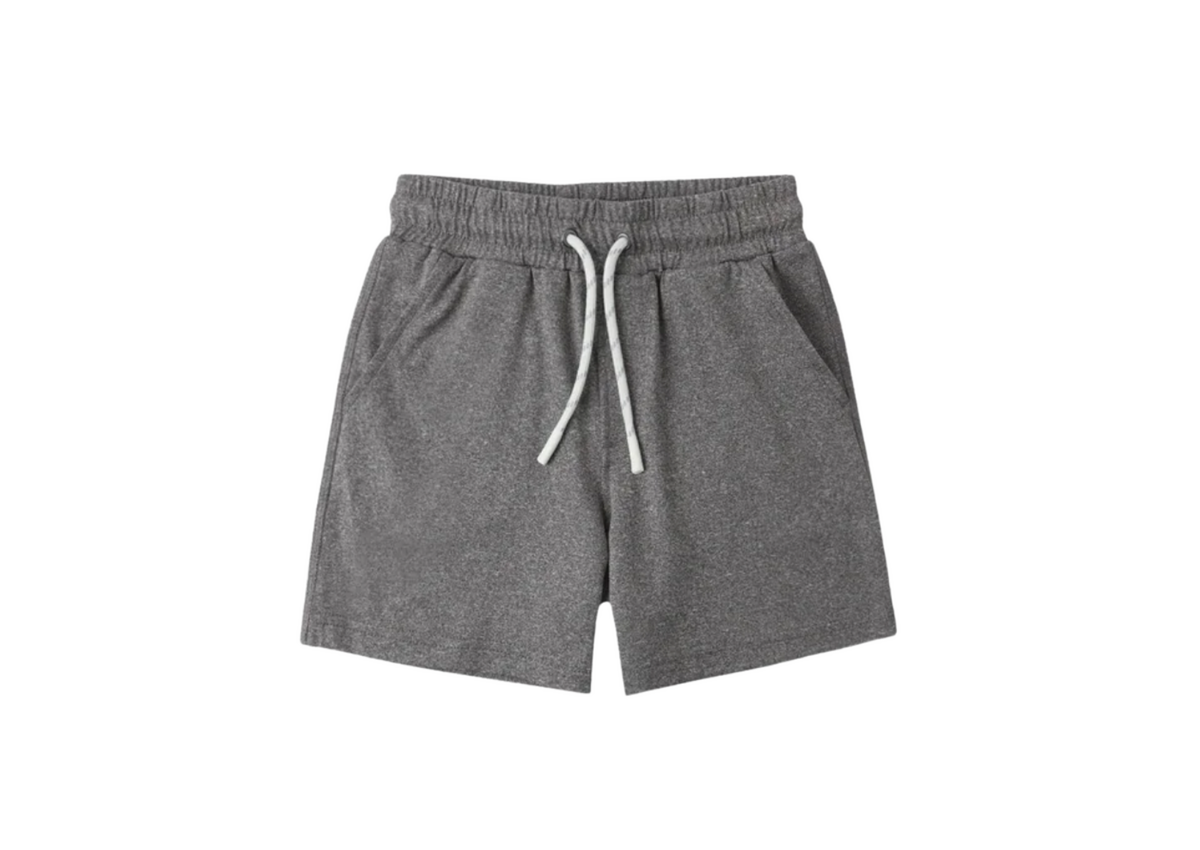 An everyday short featuring a classic elastic waistband, durable drawstrings, front pockets, and a zipper back pocket.