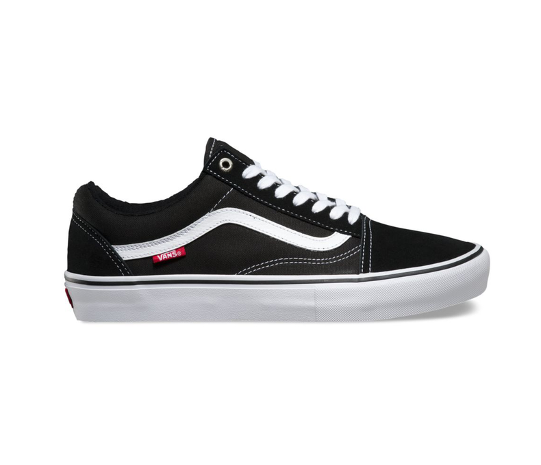 The Old Skool Pro, a Vans classic upgraded for enhanced performance, features suede, canvas, and leather uppers, single-wrap foxing tape,